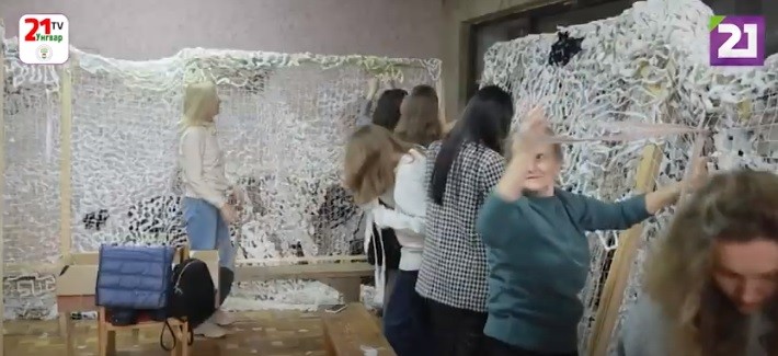 В Ужгороді волонтери продовжують плести зимові білі маскувальні сітки