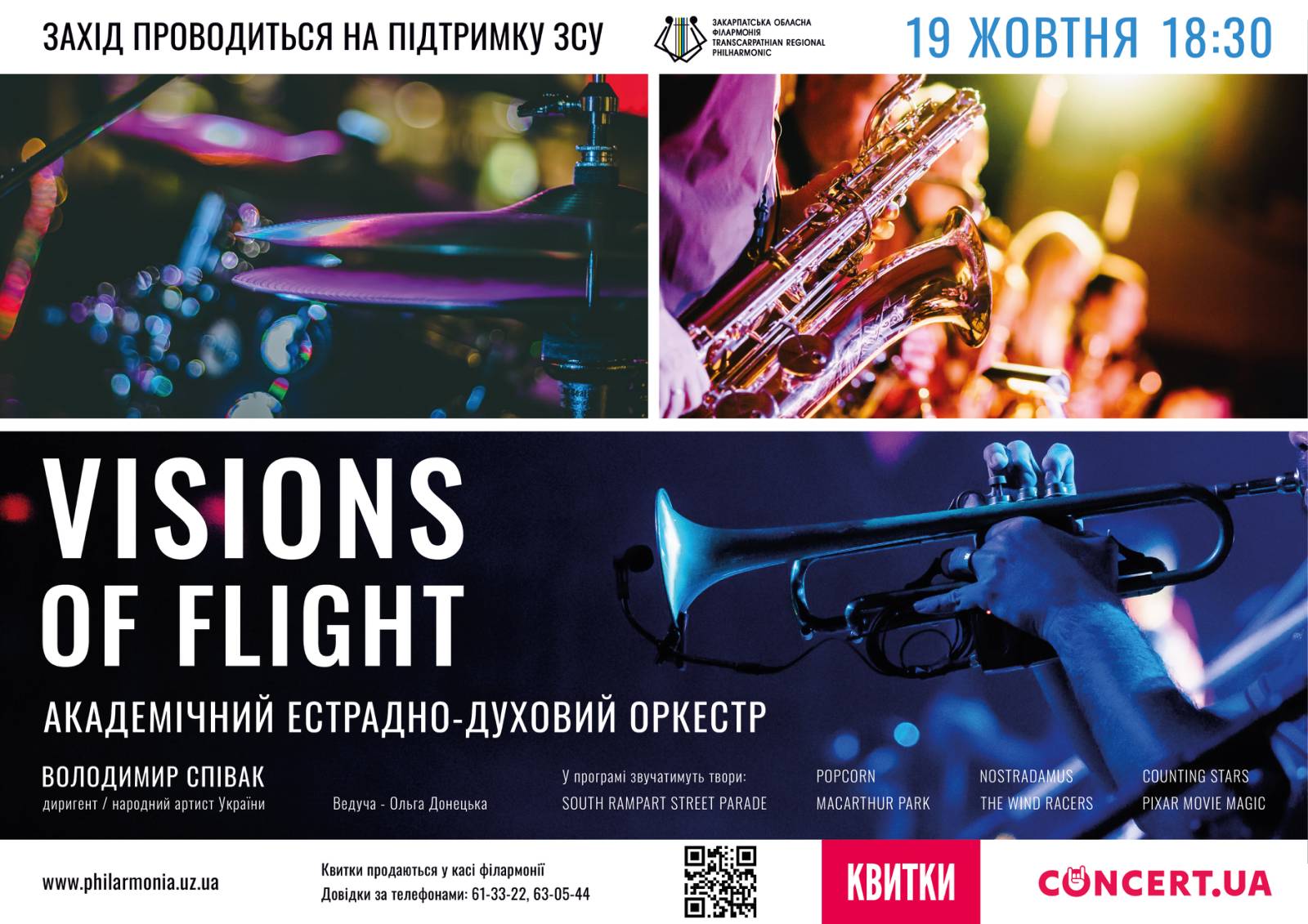 «Visions of flight» розпочнеться о 18:30 на сцені головної концертної установи краю та порадує слухачів творами зарубіжної класики, а також естрадною та джазовою музикою.