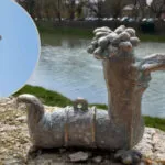 Скульптура створена у вигляді руки Ласло, що тримає його винахідом. Вона виступає з кам’яної стіни біля основи пішохідного мосту в Ужгороді. Автором цього твору є скульптор Роман Мурник.