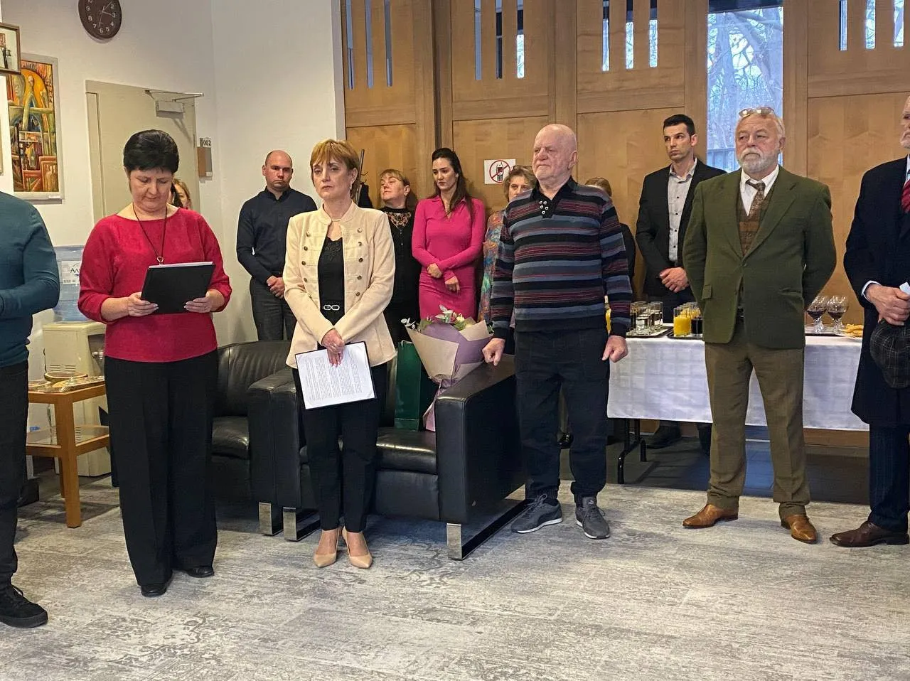 Заступник директора департаменту культури Закарпатської ОДА Віктор Кравчук привітав автора з відкриттям експозиції, поділився враженнями від його робіт та побажав наснаги і нових творчих звершень.