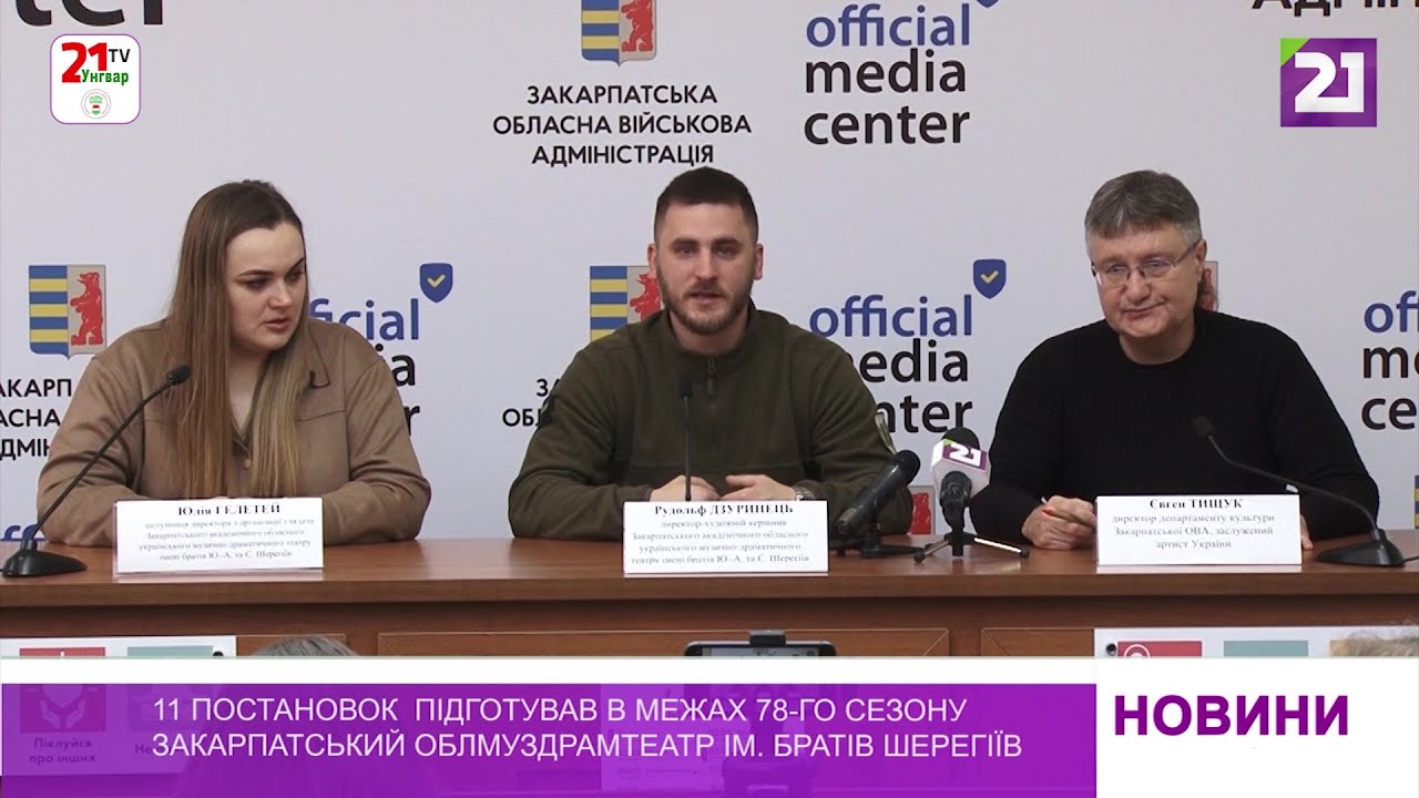 Насичений прем’єрами, співпрацею із запрошеними режисерами та новаціями – таким є 78-й сезон в Закарпатському академічному обласному муздрамтеатрі ім. братів Шерегіїв. Нині уже практично готова 11-та постановка із заявлених 12-ти. Проробленою роботою, досягненнями та подальшими амбітними творчими планами поділився під час брифінгу у прес-центрі Закарпатської ОВА директор театру Рудольф Дзуринець.