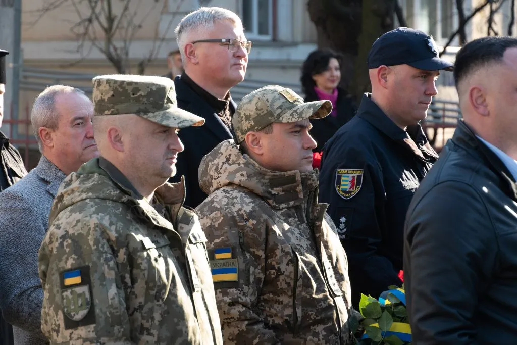 Керівники області та міста, духовенство, військові, громадськість поклали квіти до пам’ятника Августину Волошину. Хвилиною мовчання вшанували всіх загиблих у боротьбі за свободу та незалежність України.