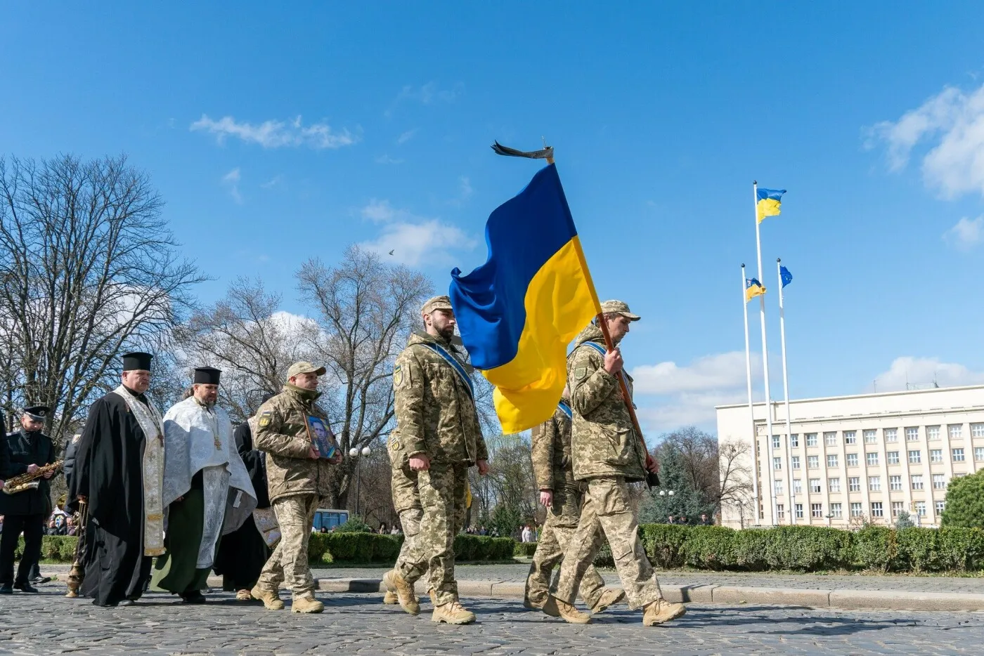 Священники відслужили заупокійну літургію, після чого жалобна хода вирушила до Пагорба Слави, де Сергія Нестеренка поховали з усіма військовими почестями.