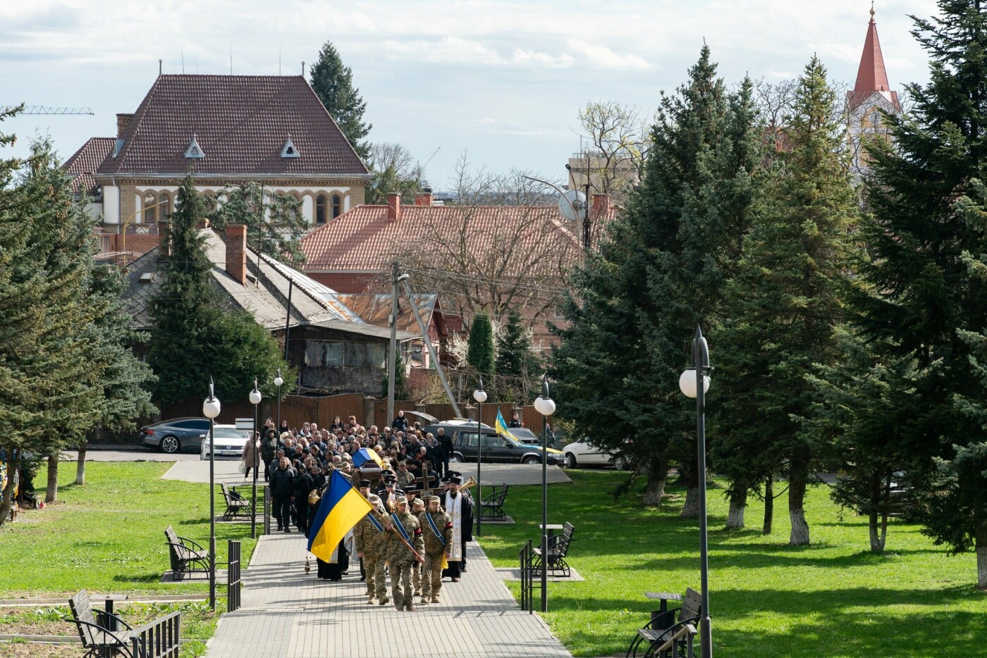Священники відслужили заупокійну літургію, після чого жалобна хода вирушила до Пагорба Слави, де Сергія Нестеренка поховали з усіма військовими почестями.