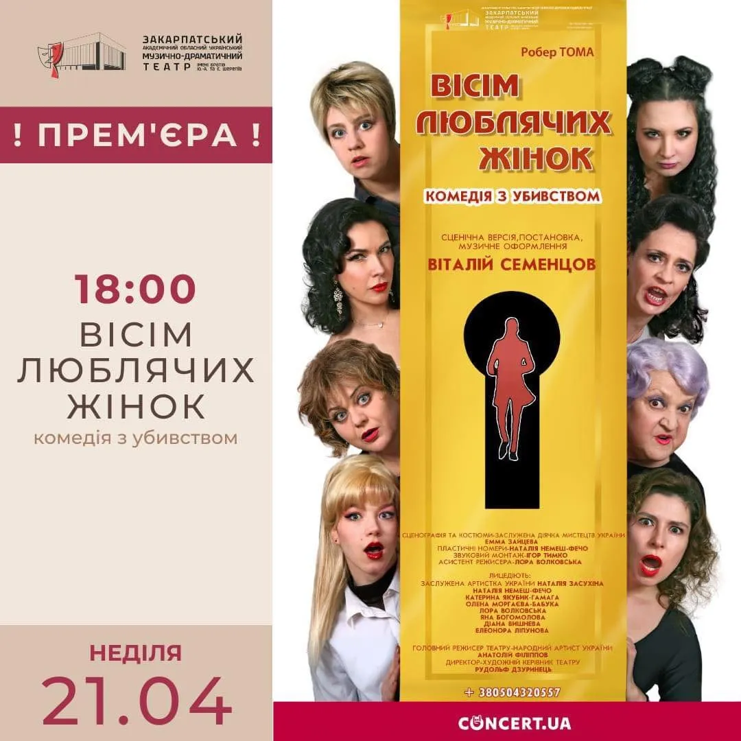 21 квітня (неділя) о 18:00 ви маєте можливість побачити або переглянути ще раз неймовірну прем’єру – “8 люблячих жінок” (режисер-постановник Віталій Семенцов). Ця вистава вже підкорила київську публіку і готова знову подарувати незабутні емоції нашим глядачам! Не пропустіть!