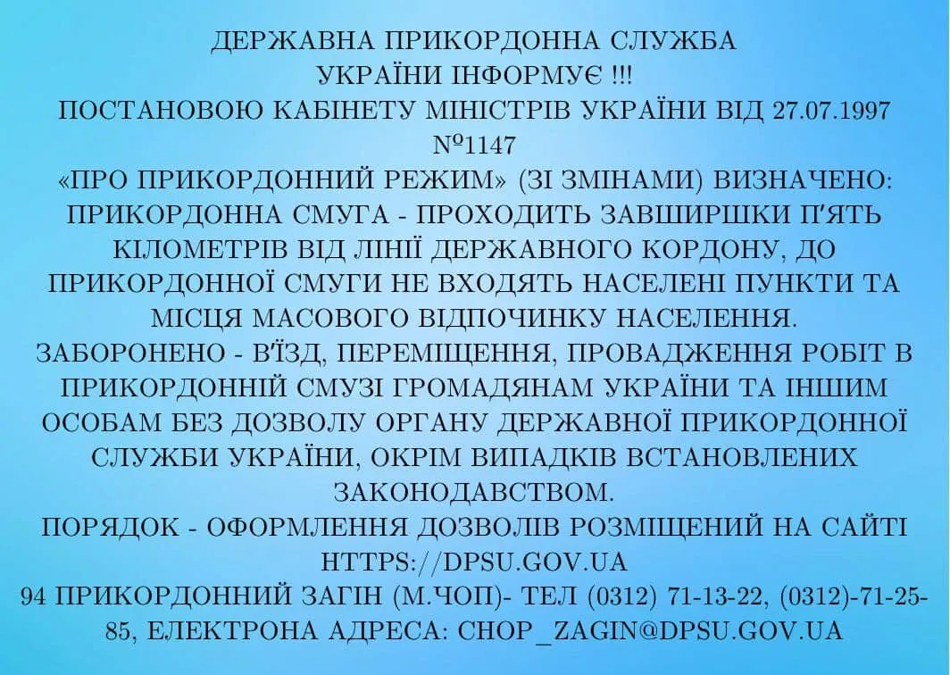 На Ужгородщині розпочато видачу дозволів на перебування у прикордонній зоні. Юрій Гузинець, голова Ужгородської районної державної адміністрації, у своєму Facebook-пості відповів на найпоширеніші питання з цього приводу.