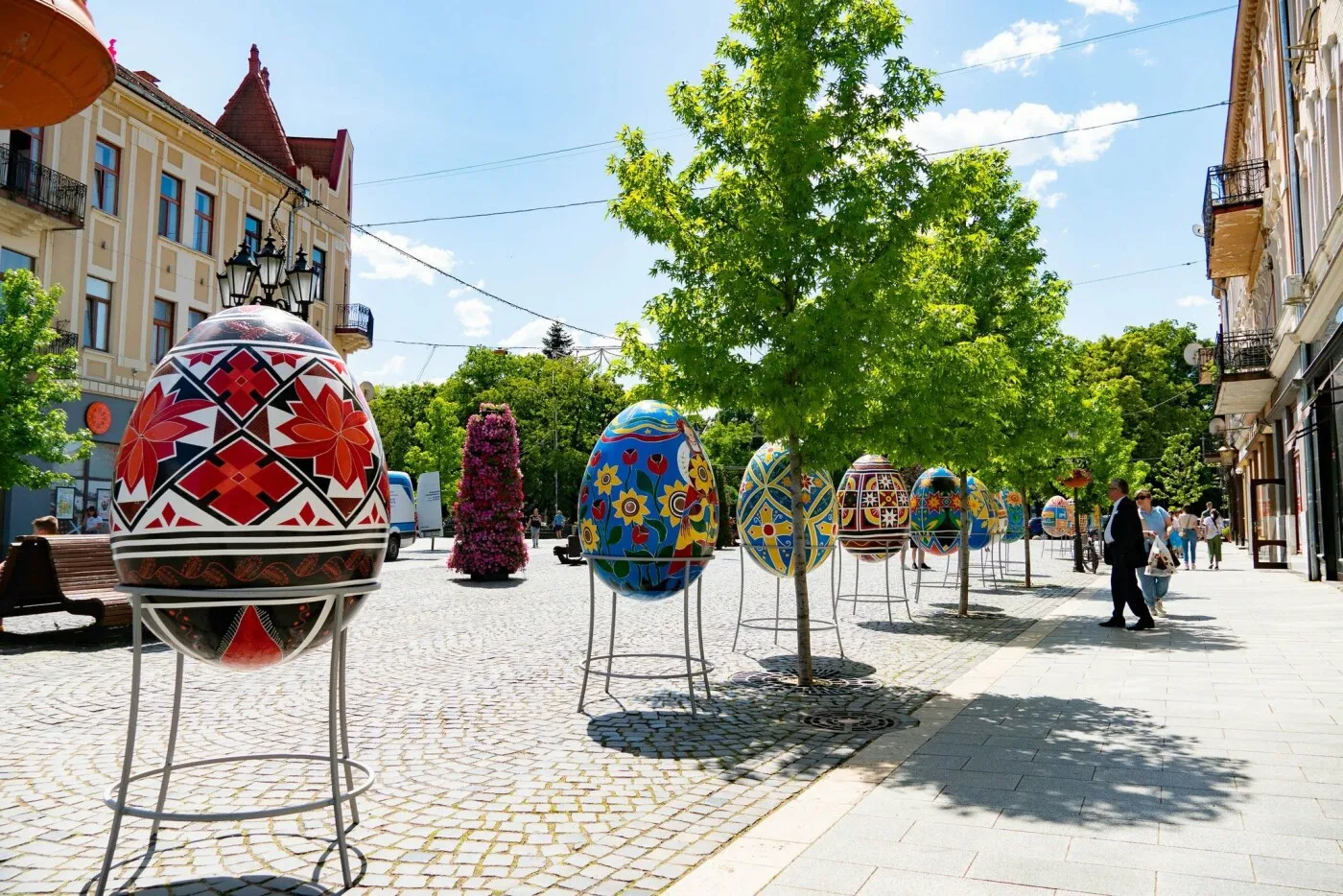 12 писанок до Великодня встановили на площі Шандора Петефі в обласному центрі. Чотири з них розмалювали викладачі Ужгородської школи мистецтв Василь Вовчок, Михайло Йолич, Аліна Роман, Костянтин Турко, Олександр Сидорук.