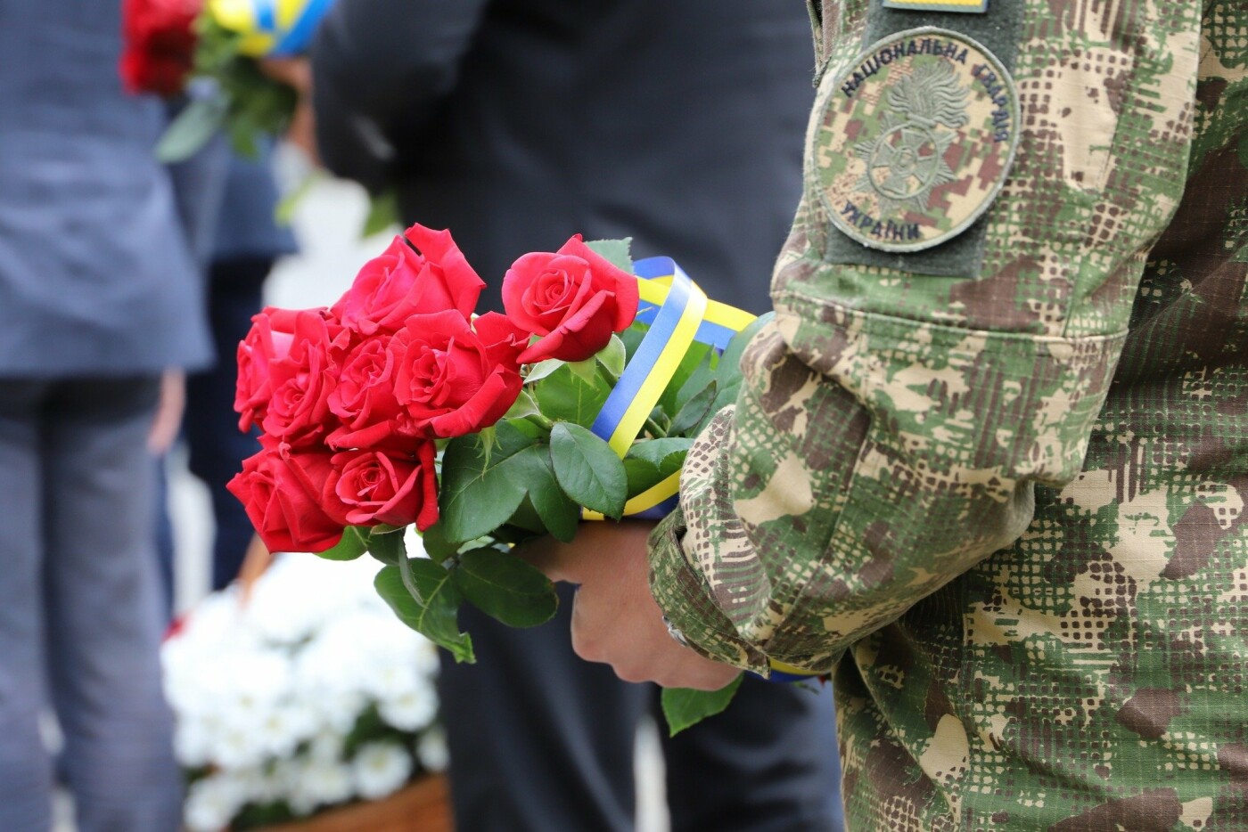 Керівники краю та міста, дипломати, представники правоохоронних органів та силових структур, ДСНС, військові, громадськість поклали квіти до Меморіалу загиблим воїнам на Сході і до могил загиблих українських Героїв на Пагорбі Слави.