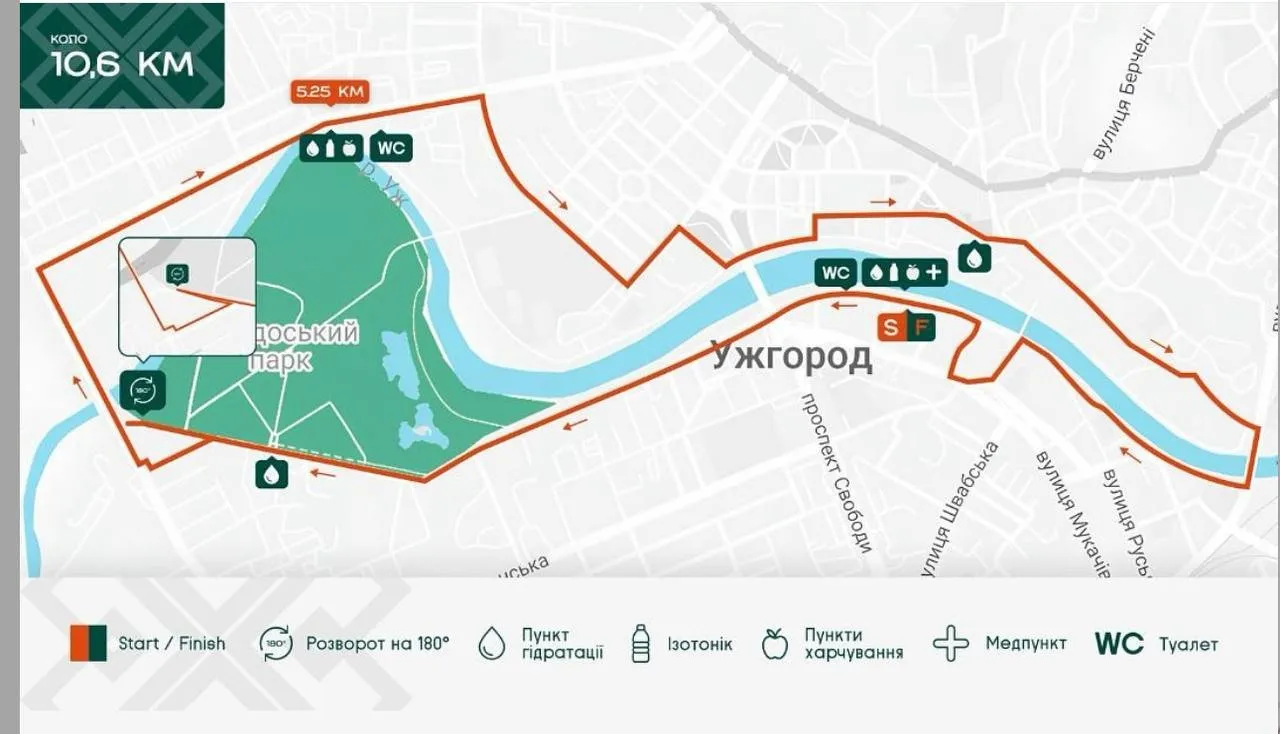 Як зазначалося, вперше в Ужгороді відбудеться повний марафон – на 42,195 км. Крім того, охочі можуть спробувати сили на півмарафоні 21,1 км, забігу «Десятка», естафеті 4 по 5,25 км та благодійний забіг на 1 км. Наразі зареєструвалися близько 700 учасників із різних куточків України, а також з-за кордону.