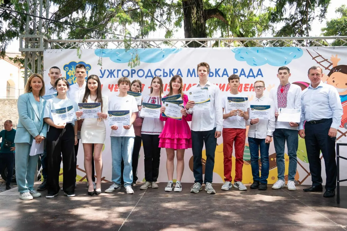 В Ужгороді привітали переможців і призерів І етапу Всеукраїнського конкурсу-захисту науково-дослідницьких робіт учнів-членів Малої академії наук України у 2022/2023 навчальному році, а також переможців і призерів ІІІ й ІVетапів Всеукраїнських учнівських олімпіад. Урочистості відбулися сьогодні у сквері імені Героїв Майдану. Про це інформує Ужгородська міська рада.