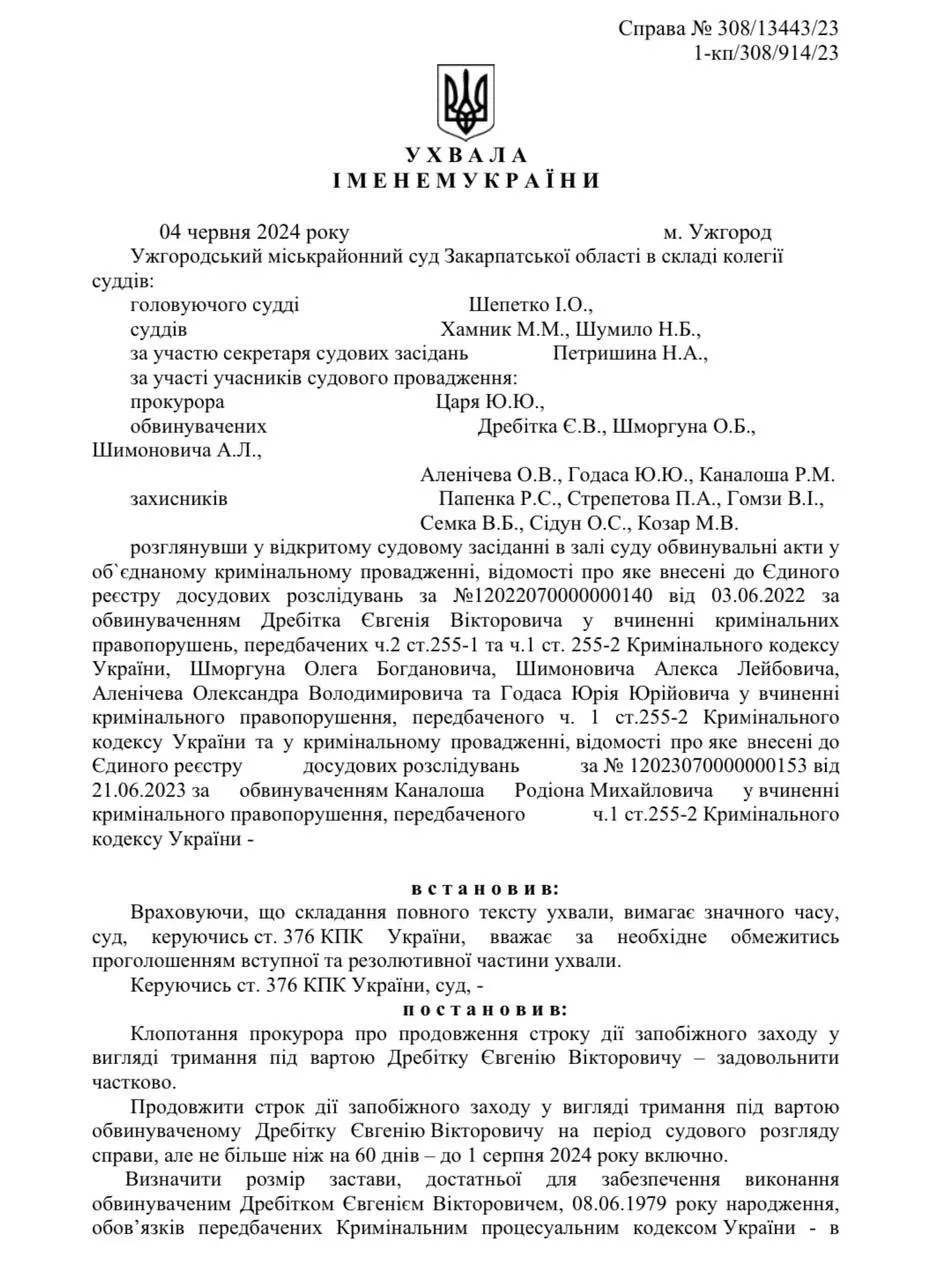 Стало відомо, що сьогодні суддя Ужгородського міськрайонного суду Ірина Шепетко, призначила Дребітку Євгену прізвисько «Білий» заставу у 980 тисяч гривень (всього близько $23 000) і таким чином дала змогу вийти на свободу мукачівцю. Не треба вам пояснювати, що таке для кримінальника $23к, правда?)