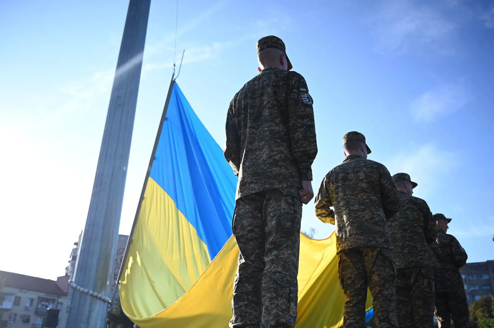 На найвищий флагшток краю національний прапор підняв десятирічний Владислав, син полеглого захисника Юрія Щобака з Ужгородщини. Батько хлопчика загинув у квітні 2022 року в боях під Луганськом.