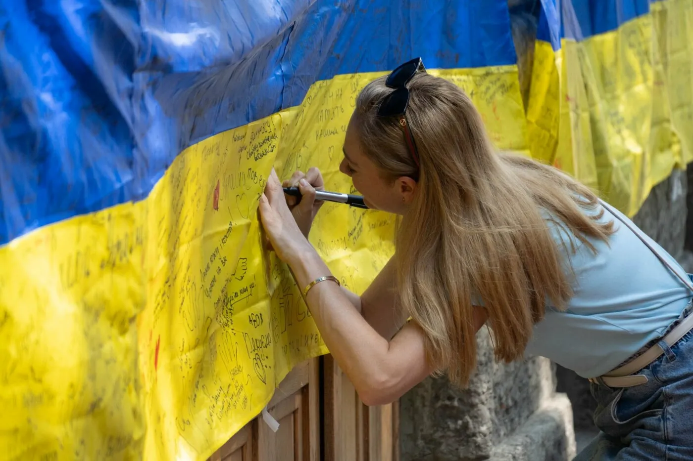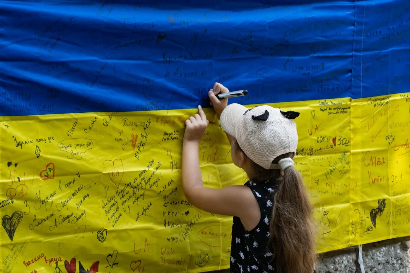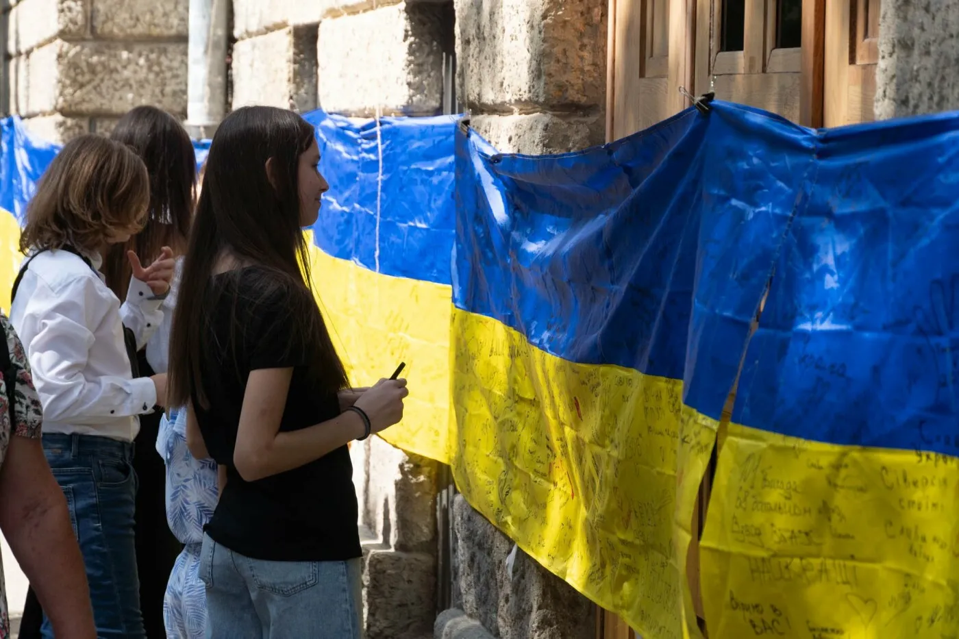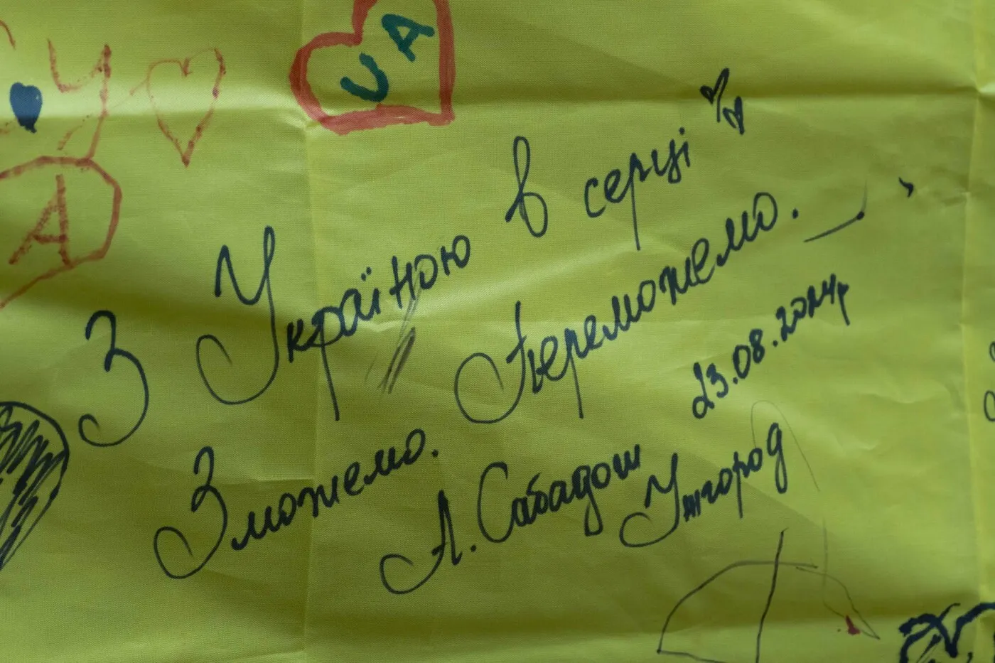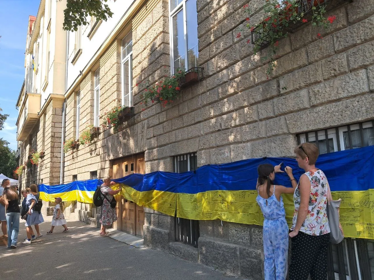 Як інформує Ужгородська міська рада, до 21:00 сьогодні, 24 серпня, на стіні Ужгородського ліцею ім.Т.Г.Шевченка 25-метровий прапор, на якому кожен охочий може написати слова привітання або вдячності нашим мужнім захисникам і захисницям.