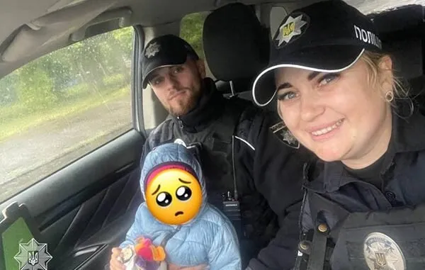 Під час патрулювання правоохоронці помітили дитячий візок із дитиною, віком близько двох років, без нагляду дорослих. Оскільки йшов дощ, малюк промок і замерз.
