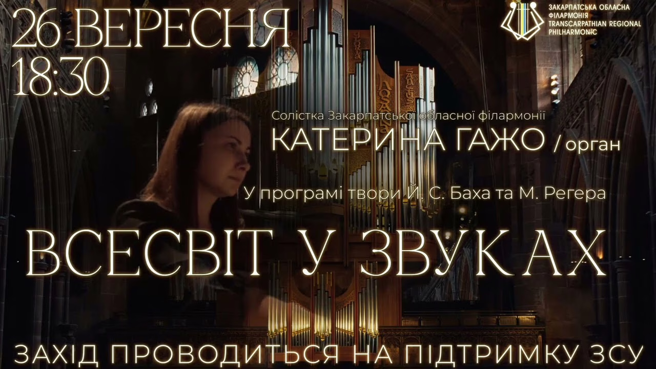 Зануритись у світ гармонії й затишку, відчути незабутні емоції та почуття глядачі зможуть 26 вересня, о 18:30, завітавши на органний концерт талановитої та професійної артистки Катерини Гажо.
