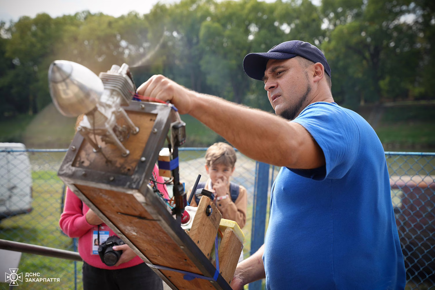 Саме для цього батальйону організатори події збирають гроші на РЕБи. Олександр, зокрема, за донати заточує інструменти. Неподалік учасники заходу катаються на електричній дрезині. На цю подію свій винахід співорганізатор заходу Олексій Любецький привіз спеціально.