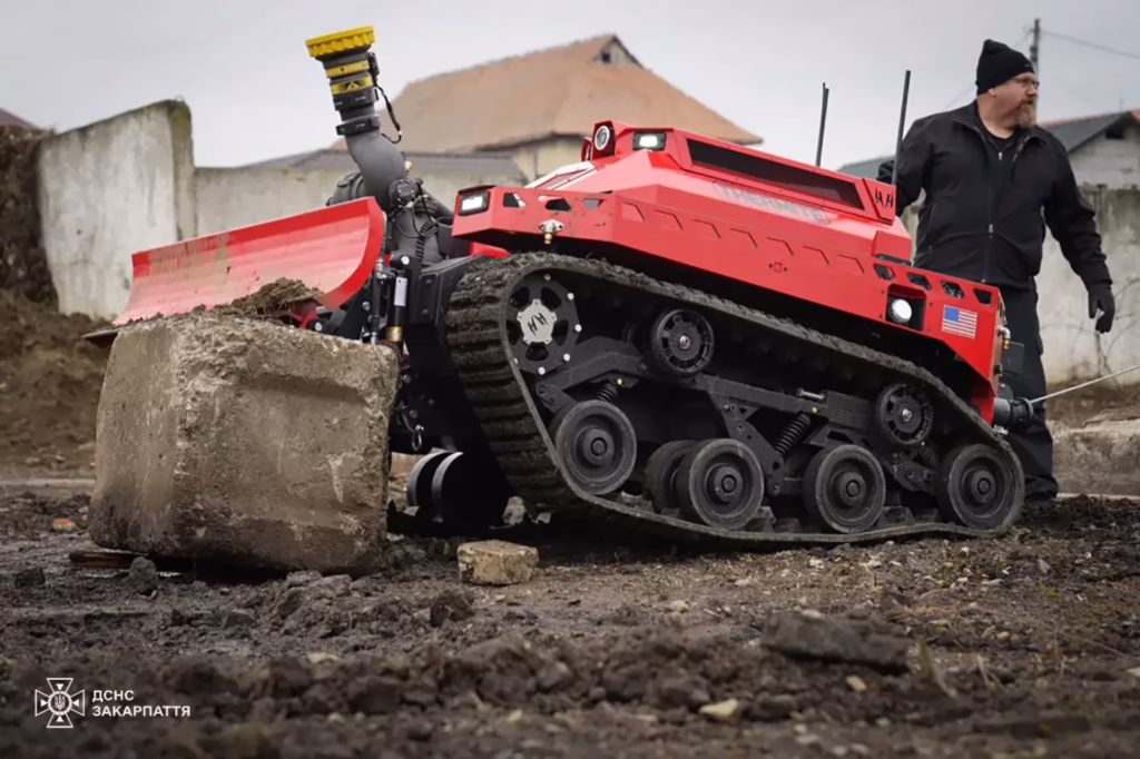 Робот Thermite показав, що він не тільки розпилює воду на 100 метрів, але й може стати одним з команди вогнеборців. Про це інформує ГУ ДСНС Закарпаття.