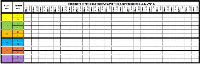 Відповідно, ПрАТ “Закарпаттяобленерго” відмінило раніше оприлюднений на середу, 18-го, графік відключення електроенергії для побутових споживачів, замінивши його на “білий”, без позначення відключень.