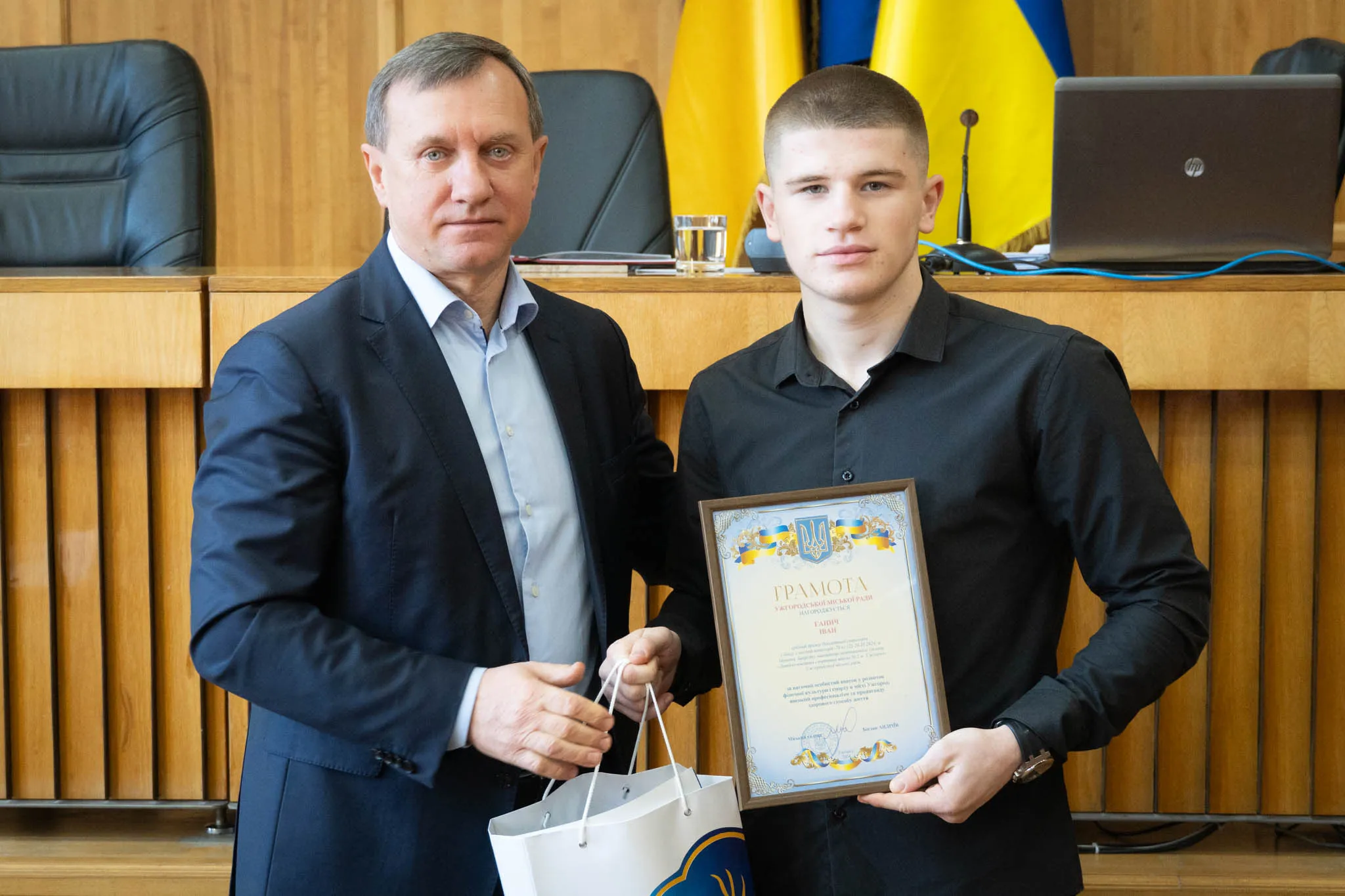 Перед початком роботи чергового засідання сесії Ужгородської міськради міський голова Богдан Андріїв відзначив грамотою спортсмена Івана Ганича