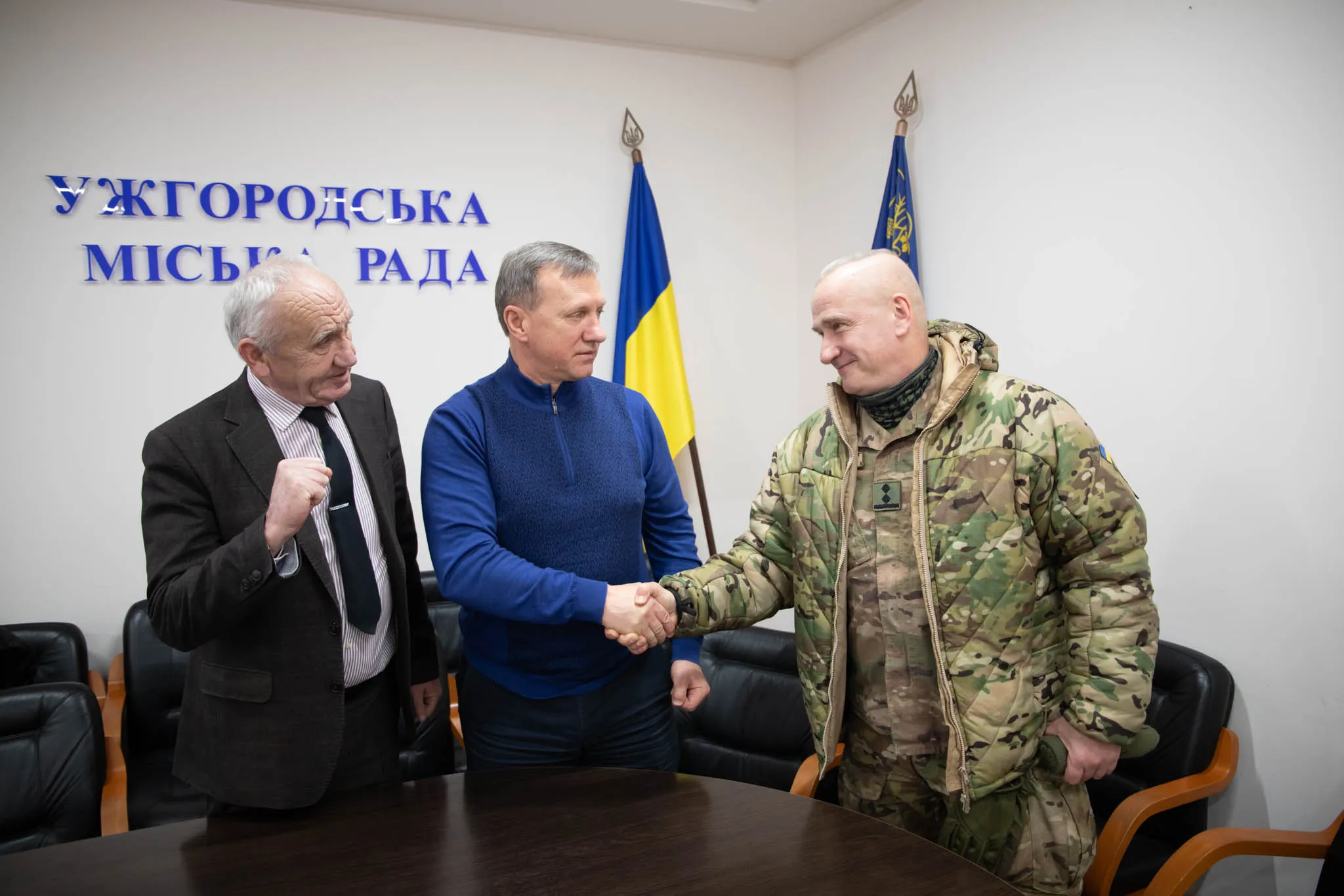 Ужгородський міський голова Богдан Андріїв та начальник управління охорони здоров’я та цивільного захисту населення міськради Ярослав Глагола зустрілися напередодні із командиром 68-го окремого батальйону 101 бригади ТрО підполковником Олександром Жарським. Міський голова від імені всієї громади подякував військовим за найважливіше для українців зараз – захист держави.