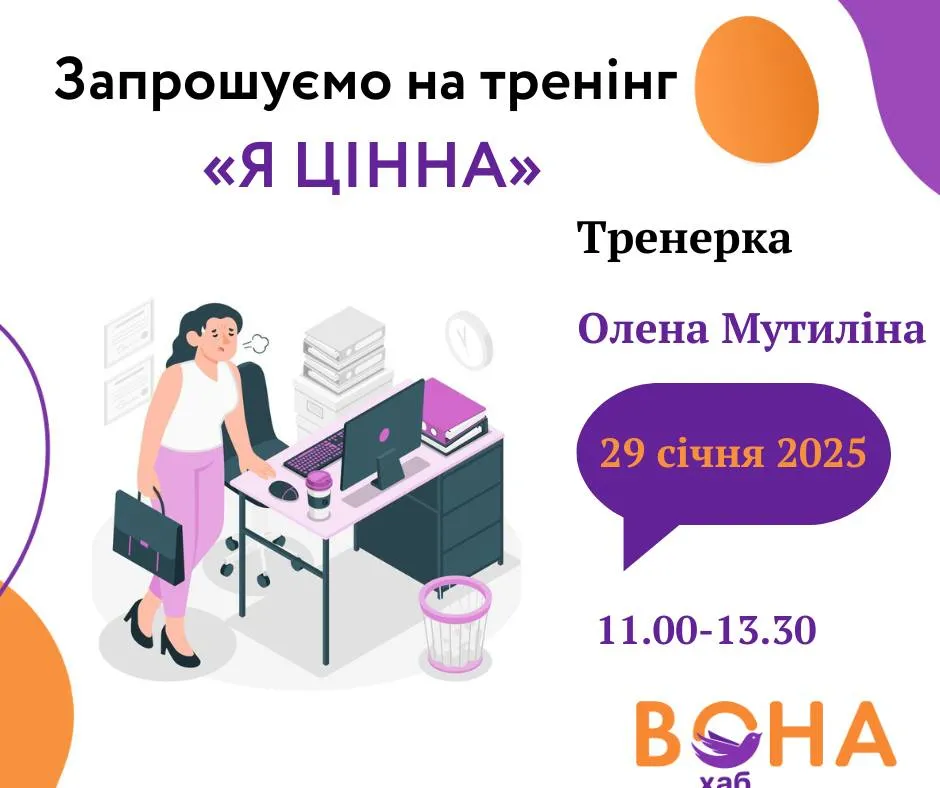ВОНА хаб. Ужгород запрошує на тренінг «Я ЦІННА», під час якого поговорять про те, наскільки важливо цінувати себе і пропрацьовувати це вміння.