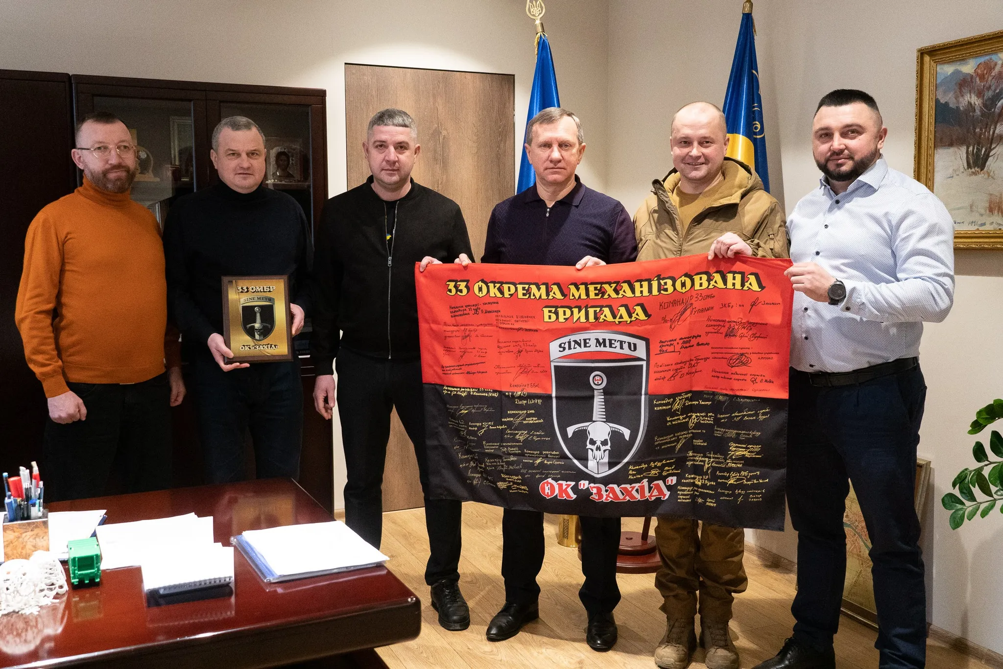 Подяку громаді Ужгорода, керівництву міської ради, депутатському корпусу за підтримку військових та прапор 33-ї окремої механізованої бригади передав напередодні заступник командира з логістики 33-ї окремої механізованої бригади Ян Гнатюк. Із воїном напередодні зустрівся міський голова Богдан Андріїв .