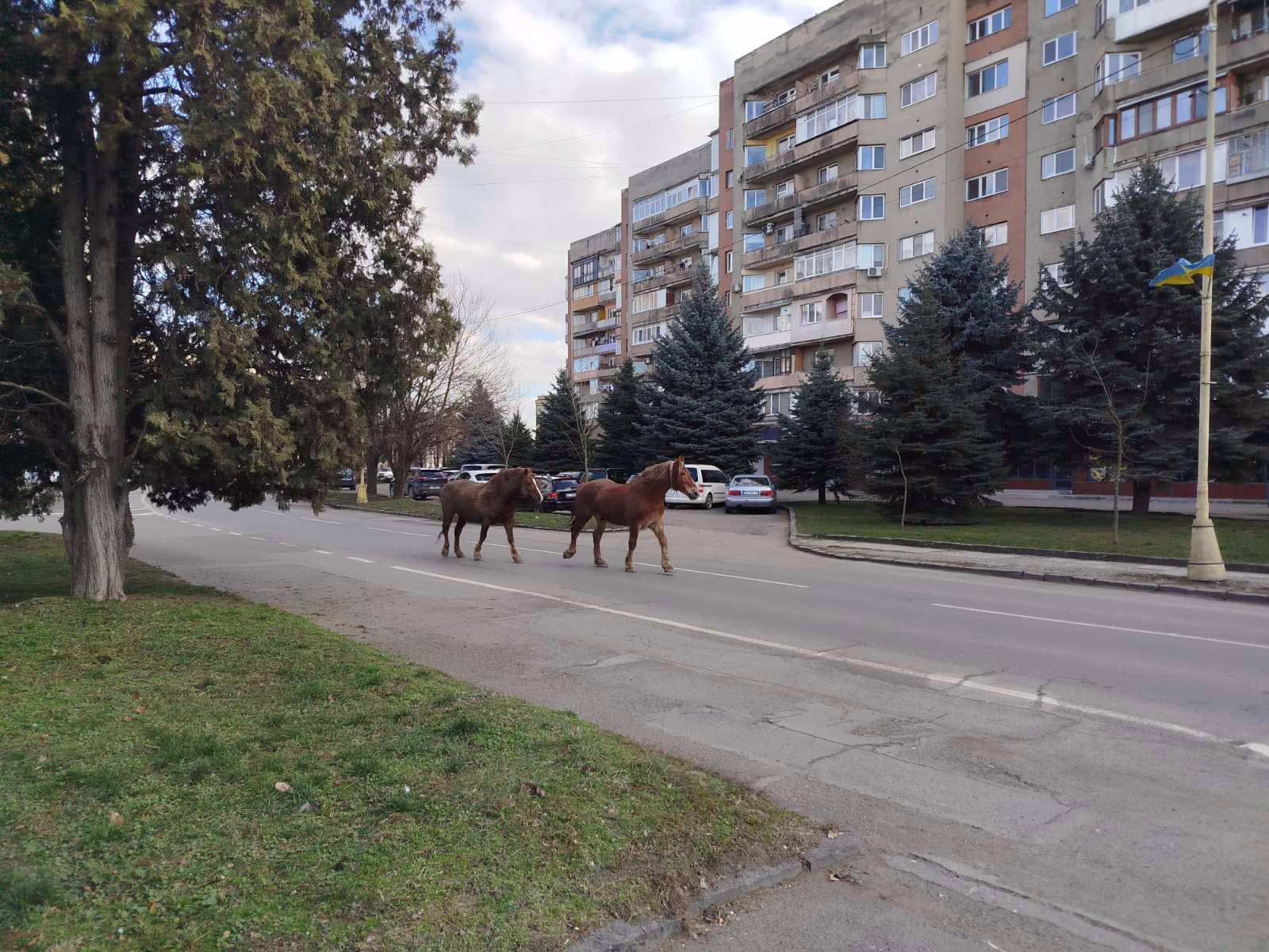 Відео відзнято починаючи з вулиці Івана Чендея (колишня Л.Толстого). Далі коні, рухаючись назустріч автомобілям, завернули на кільце перед транспортним мостом і далі попрямували на проспект Свободи біля 16-поверхівки.