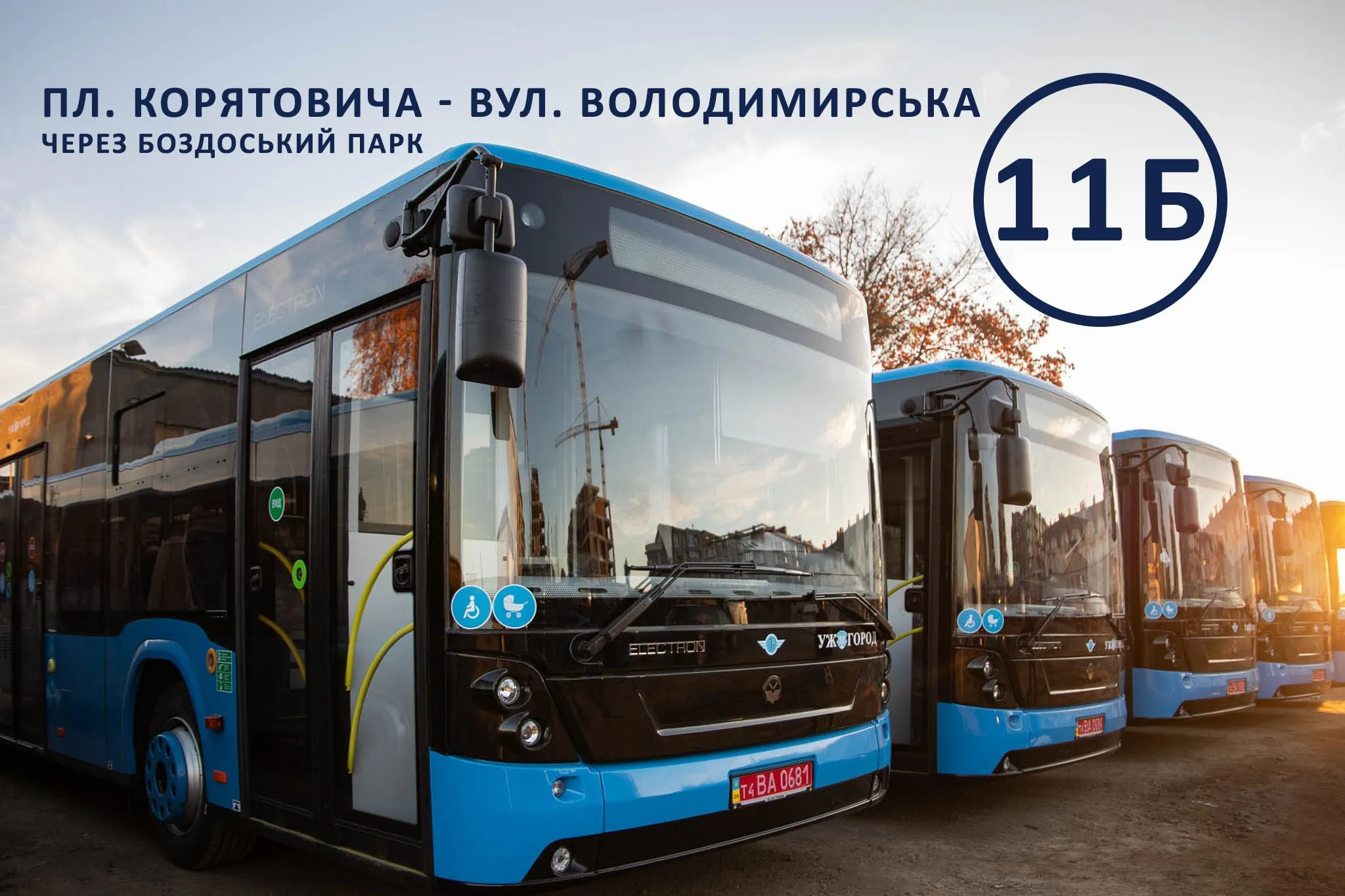 Новий автобусний маршрут № 11Б «вул. Володимирська – пл. Корятовича (через Боздоський парк)» буде обслуговувати Комунальне Підприємство “Ужгородський муніципальний транспорт” , для чого використовуватиме три автобуси, які пристосовані для перевезення осіб з інвалідністю та інших