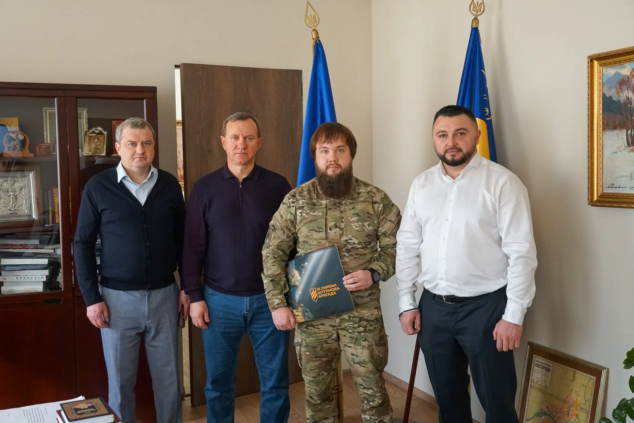 Сьогодні до Ужгородської міської ради завітав офіцер Третьої окремої штурмової бригади ЗСУ Вадим Кудіяров. Він висловив подяку міському голові Богдан Андріїв та всій громаді Ужгорода за підтримку військових, а також передав у подарунок календар, випущений бригадою.