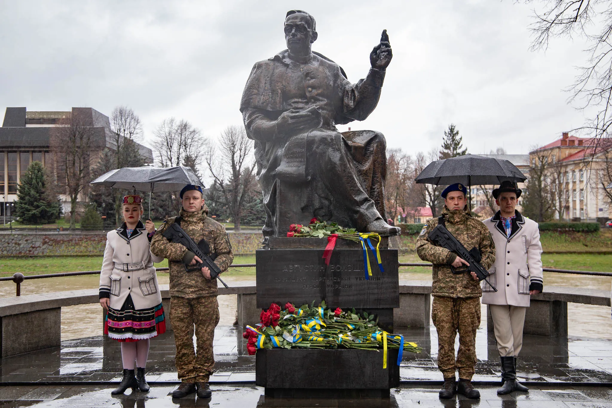 Урочистості відбулися на набережній Незалежності. Керівники області та міста, представники правоохоронних органів і силових структур, військові, священнослужителі та громадськість вшанували пам’ять Президента Карпатської України Августина Волошина та поклали квіти до пам’ятника видатному громадському і політичному діячу.