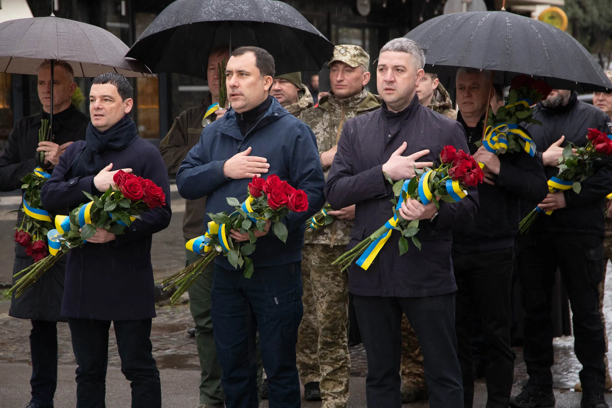 Заслужений академічний Закарпатський народний хор виконав Гімн України. Хвилиною мовчання вшанували всіх загиблих у боротьбі за свободу і незалежність України.