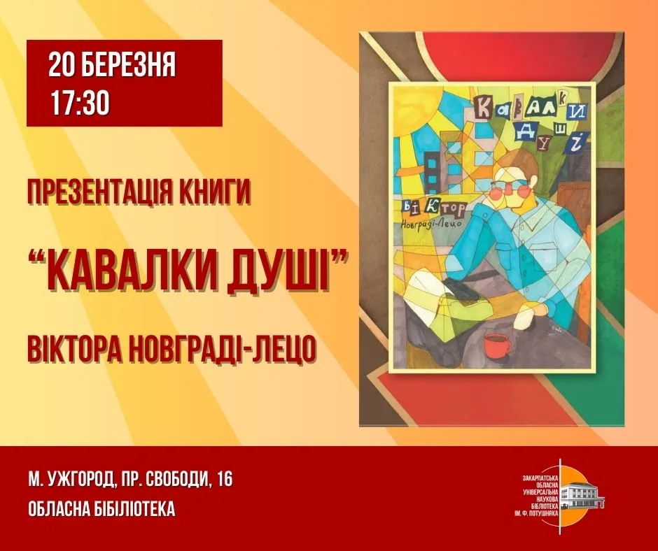 “Кавалки душі” – перша ластівка автора, який сподівається, що збірка принесе читачам естетичну насолоду. Тут вміщені вірші про простір, в якому “хмари-газети з’являються періодично”, про нас, які “притиснуті шаховим полем бруківки”, про час, в якому “ми сидимо в кінотеатрі вічності, дивимося документальну стрічку про наше життя”.