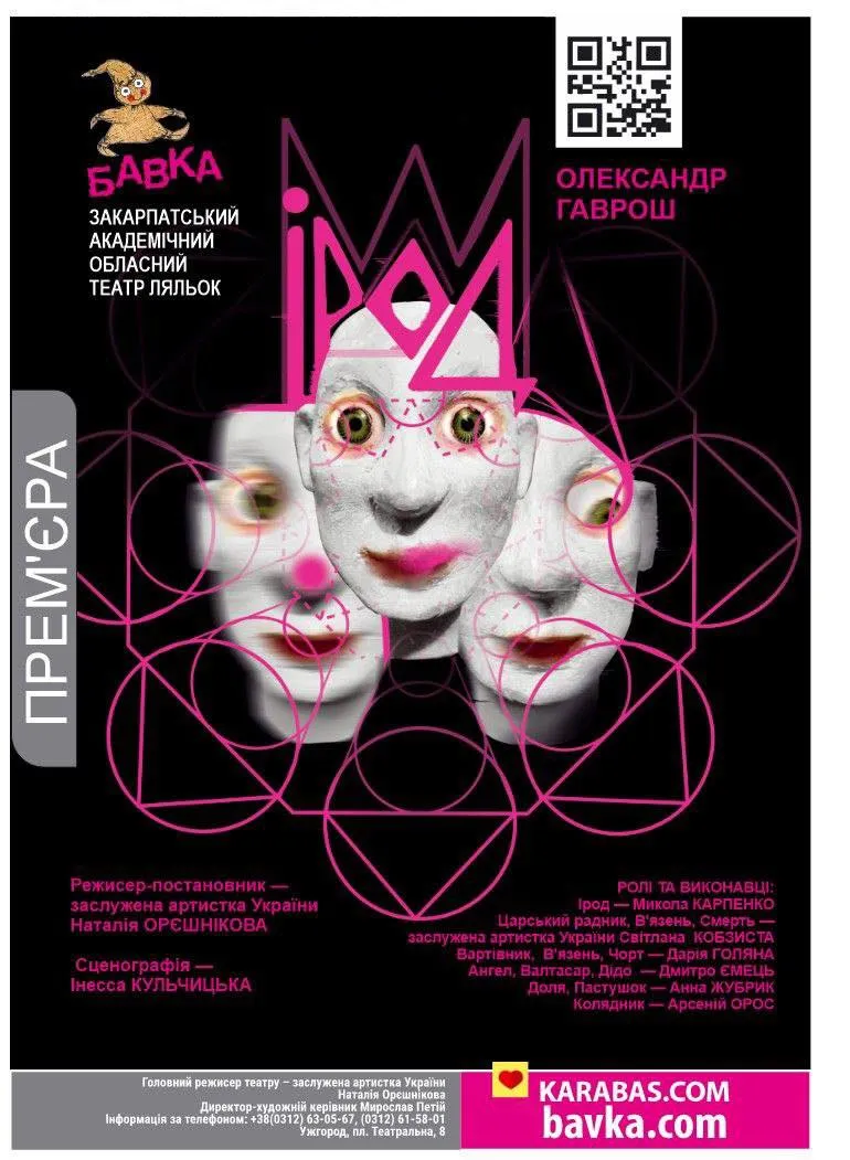 Центральний образ вистави – сам цар Ірод, якого втілює Микола Карпенко. “Актор створює багатогранний образ: його Ірод то безжальний деспот, то вразливий, змучений манією переслідування чоловік, який тоне у власних страхах і внутрішньому хаосі. Він водночас намагається будувати й руйнувати, любити й убивати, але зрештою програє в цій боротьбі”, – зазначає Олеся Данилець.