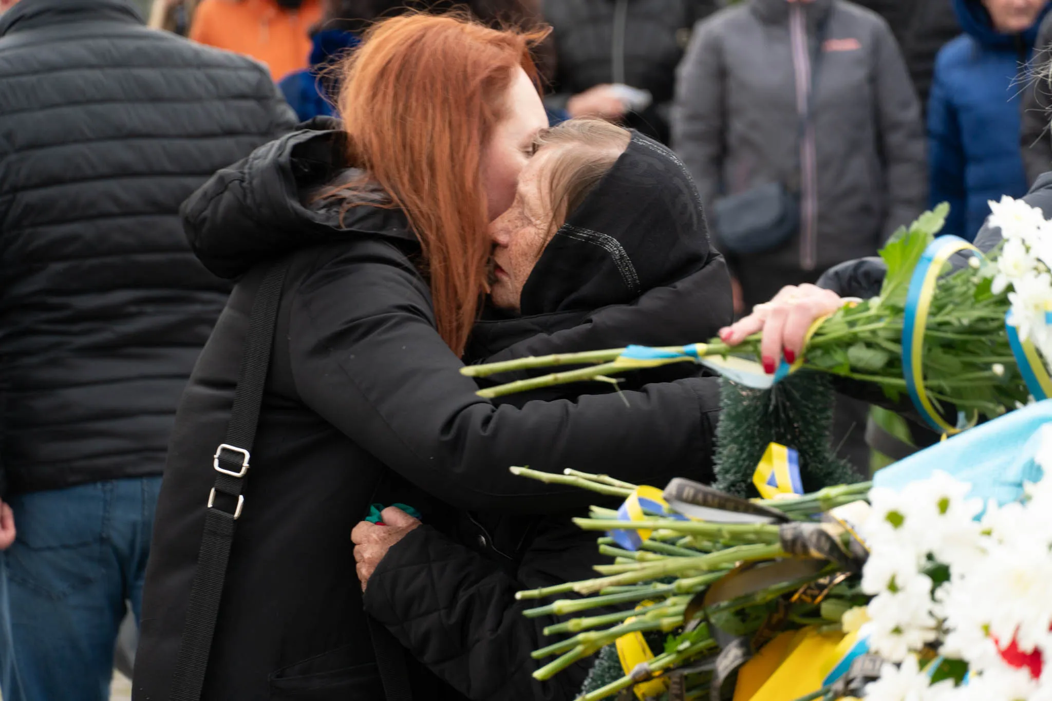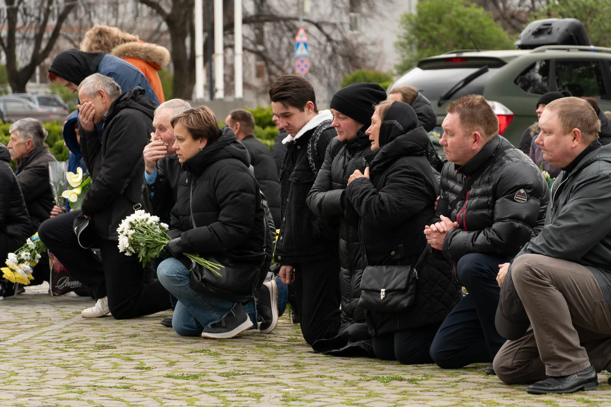 Після заупокійної літургії жалобна хода пройшла центральними вулицями міста до Пагорба Слави, де Руслана Торопова поховали з військовими почестями.