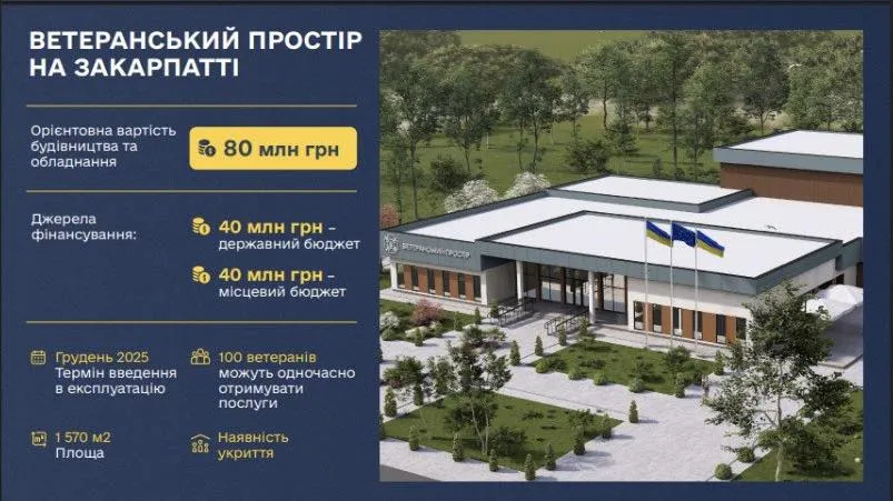 Загальний бюджет на створення ветеранських просторів на Закарпатті складе 80 мільйонів гривень, з яких половину виділить держава, а іншу частину – область та громади. Очікується створення щонайменше трьох таких центрів у різних районах області.