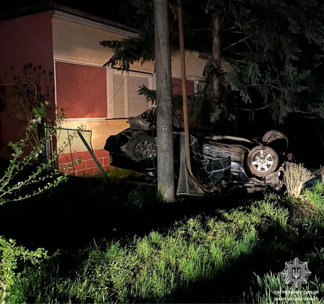 Прибувши на місце події, патрульні з’ясували, що водій на автомобілі BMW (2006 р.н. – ред.) влетів у паркан будинку, після чого авто перекинулося на дах.