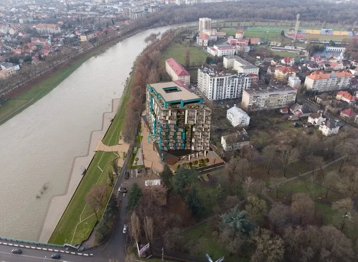 Вказану ббагатоповерхівку на ужгородській набережній зводить ТОВ «Поділля-Транс», засновником якої є депутат ужгородської міської ради від «Батьківщини» Віталій Коціпак. Згідно з даними YouControl, депутат є керівником та засновником ще 8 підприємств, серед яких компанія «МКВ», яка у 2022 році без дозволів збудувала п’ятиповерхівку на вулиці Митрака в Ужгороді. Тоді Закарпатська прокуратура звернулася до суду з вимогою зобов’язати забудовника знести будинок. Однак далі справа не просунулась.