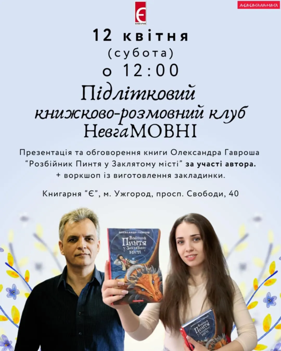 Презентація «Розбійника Пинтя в Заклятому місті» відбудеться у суботу, 12 квітня, о 12:00, в книгарні «Є» (проспект Свободи, 40).