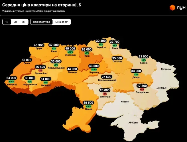 У першому кварталі 2025 року вторинний ринок житла в Україні демонструє активізацію — середня вартість квартир поступово зростає практично у всіх регіонах, навіть у прифронтових містах. За даними ЛУН, у порівнянні з попередніми періодами, українці стали частіше купувати житло, що відобразилося на динаміці цін.