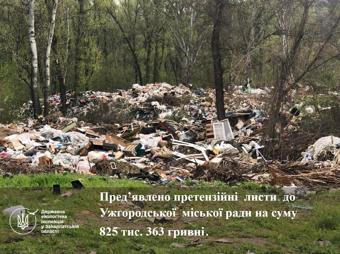 Однак при повторному обстеженні встановлено, що виявлені несанкціоновані сміттєзвалища не ліквідовані. 16.04.2025 Інспекцією розраховано розмір шкоди внаслідок засмічення земель. Пред’явлено претензійні листи до Ужгородської міської ради для добровільного відшкодування завданої шкоди на загальну суму 825 тисяч 363 гривні.