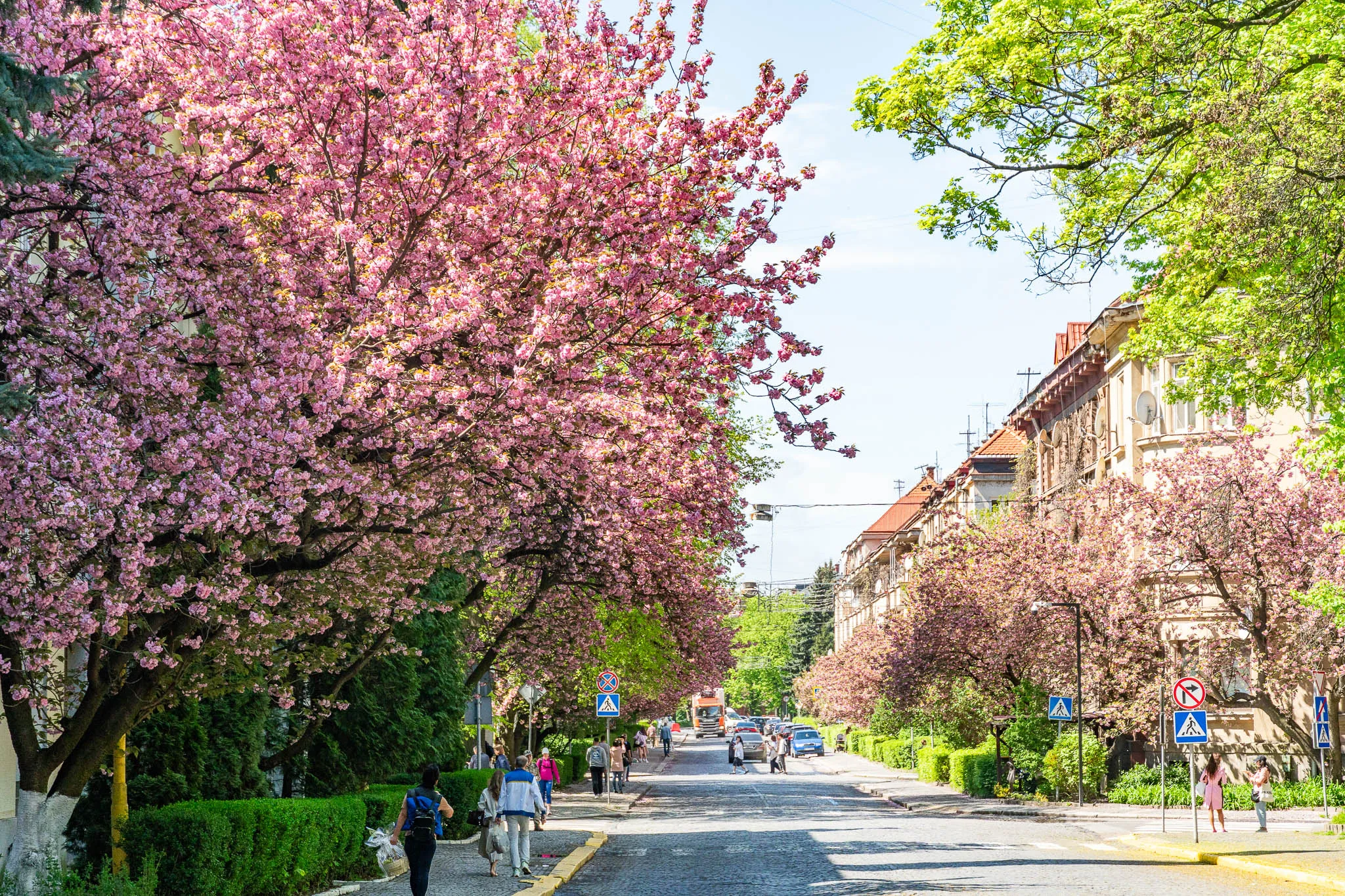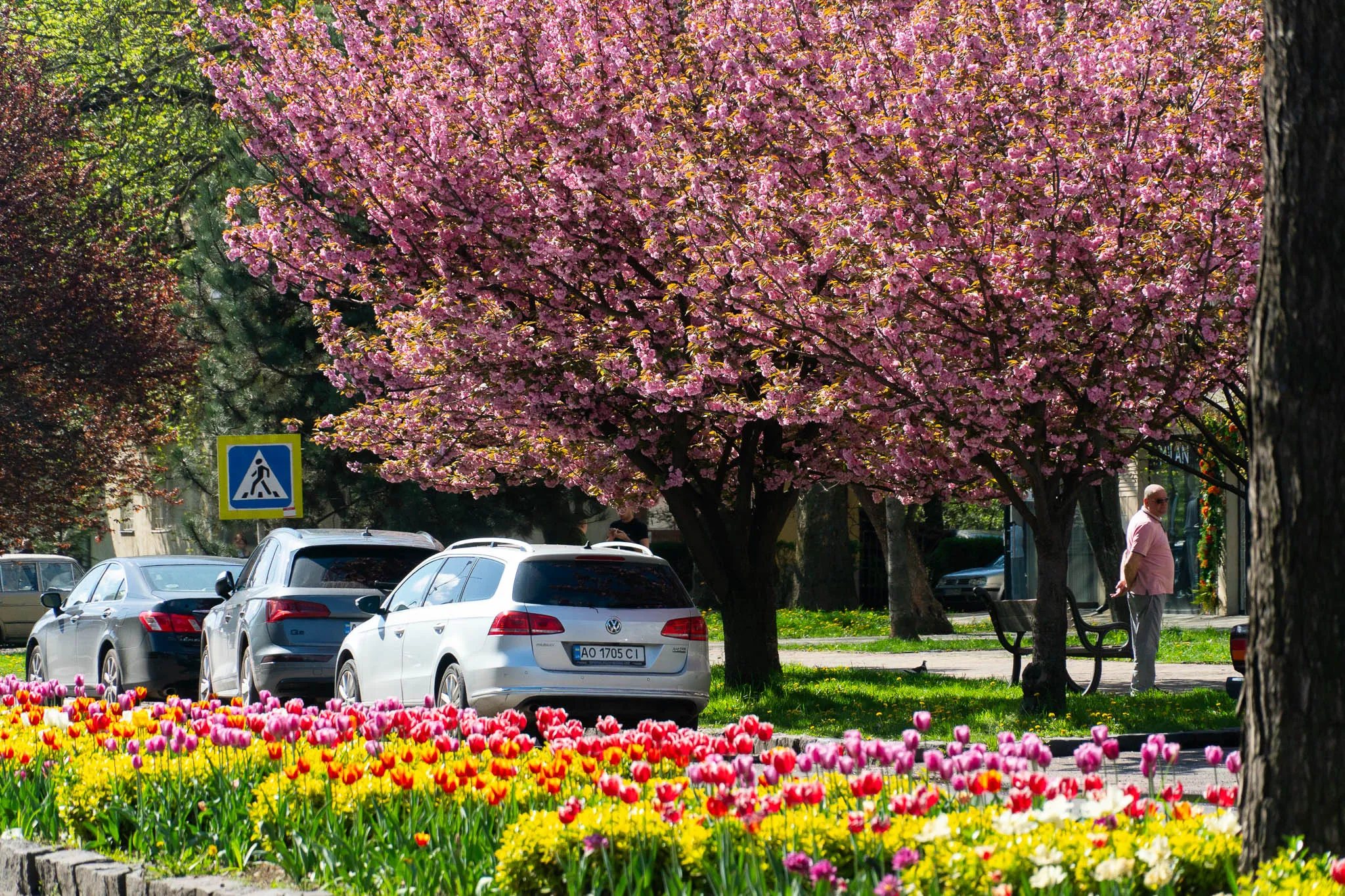 В Ужгороді – пік цвітіння сакур, однієї з головних туристичних родзинок нашого міста. Вулиці, площі та сквери, попри пізню весну та примхи природи, вкрилися рожевим квітом, даруючи ужгородцям та гостям міста особливу атмосферу спокою й краси.