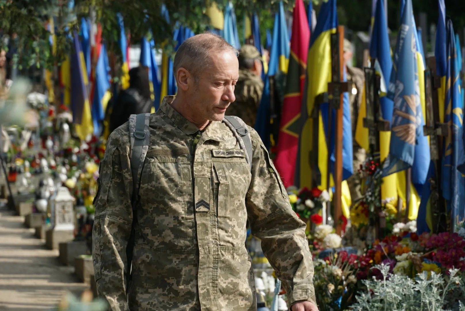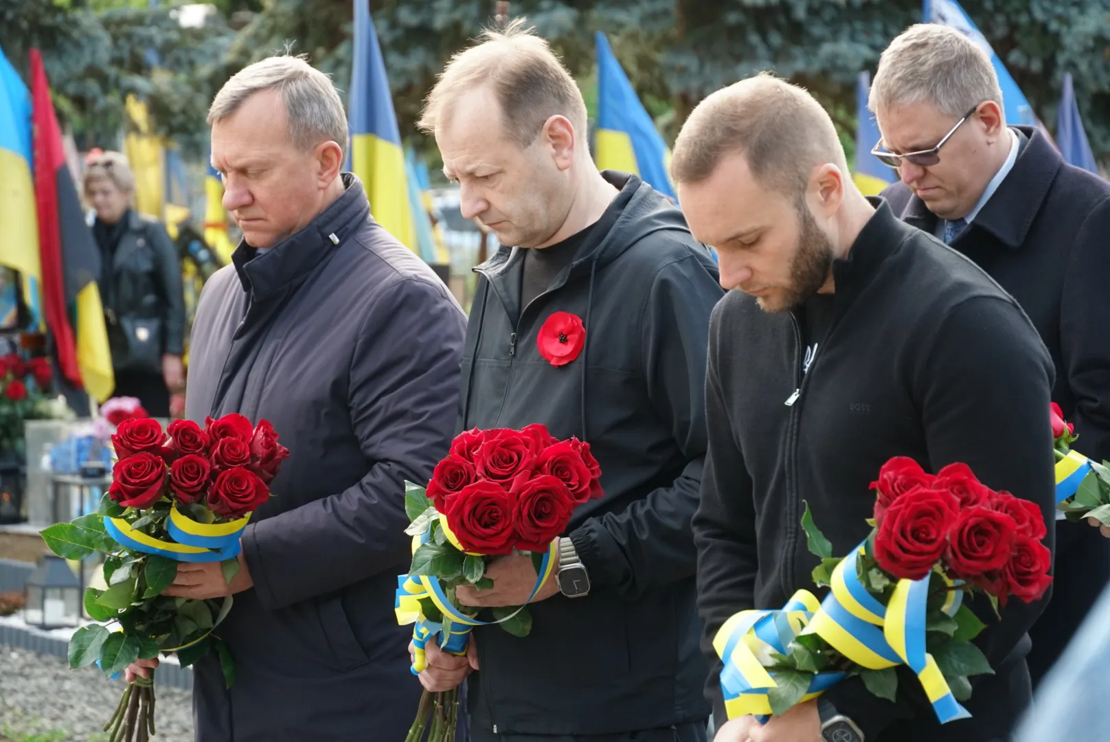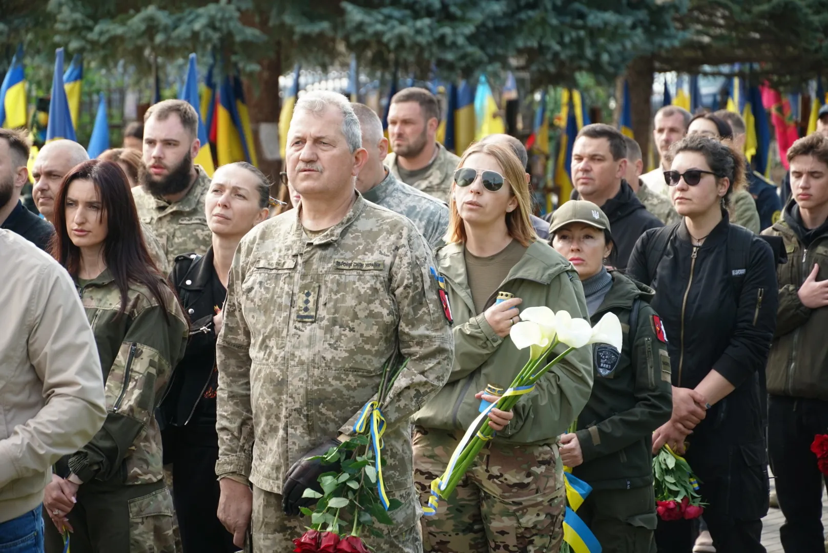 Далі поставили квіти до меморіалу і кожному захиснику, який спочиває на Пагорбі Слави.