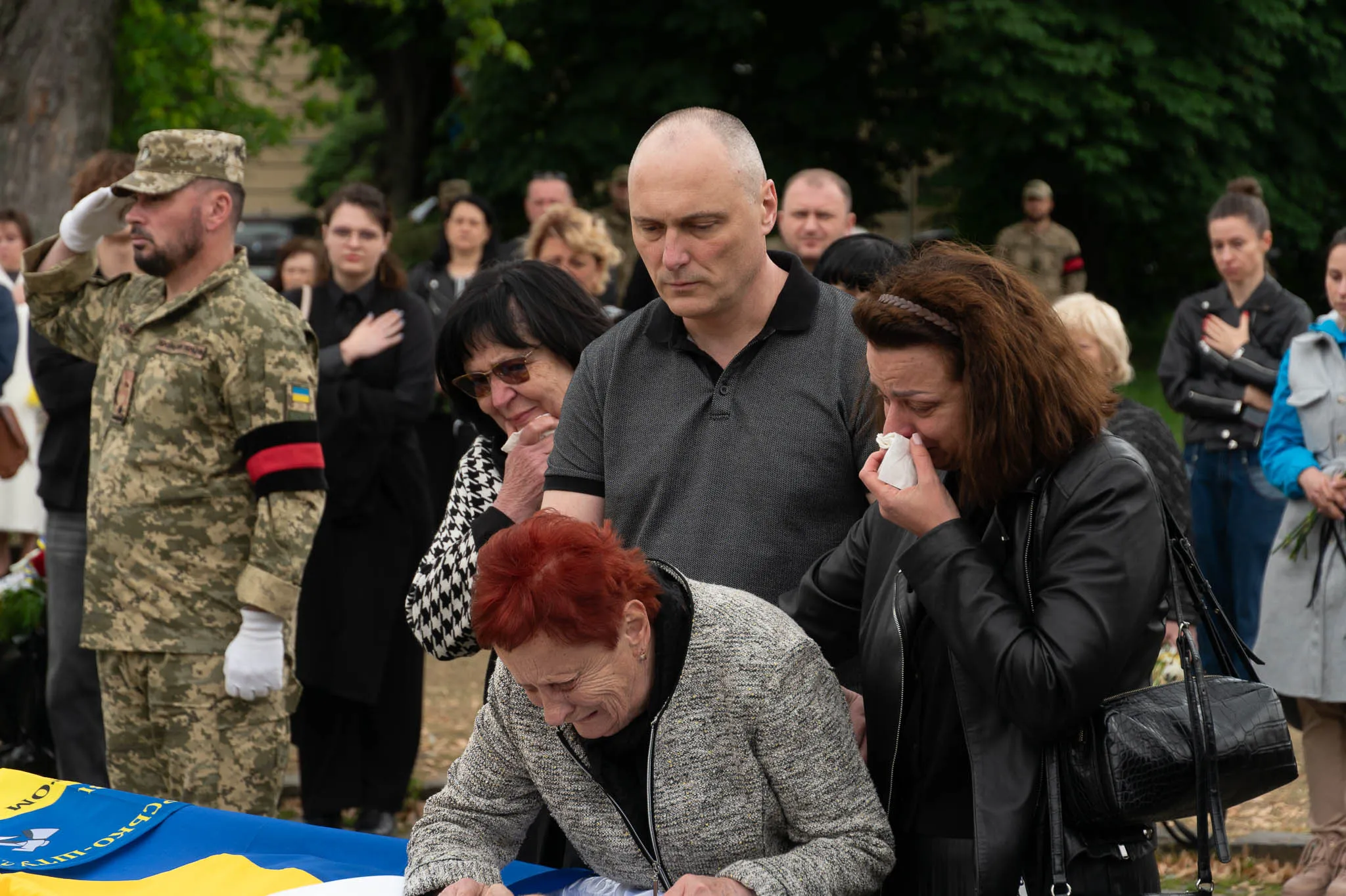 Після заупокійної літургії жалобна хода пройшла центральними вулицями міста до Пагорба Слави, де Віктора Зацариніна поховали з військовими почестями.