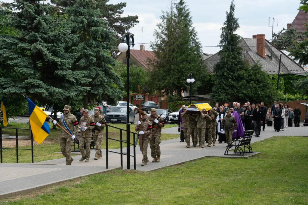 Після заупокійної літургії жалобна хода пройшла центральними вулицями міста до Пагорба Слави, де Віктора Зацариніна поховали з військовими почестями, повідомляє Ужгородська міська рада.
