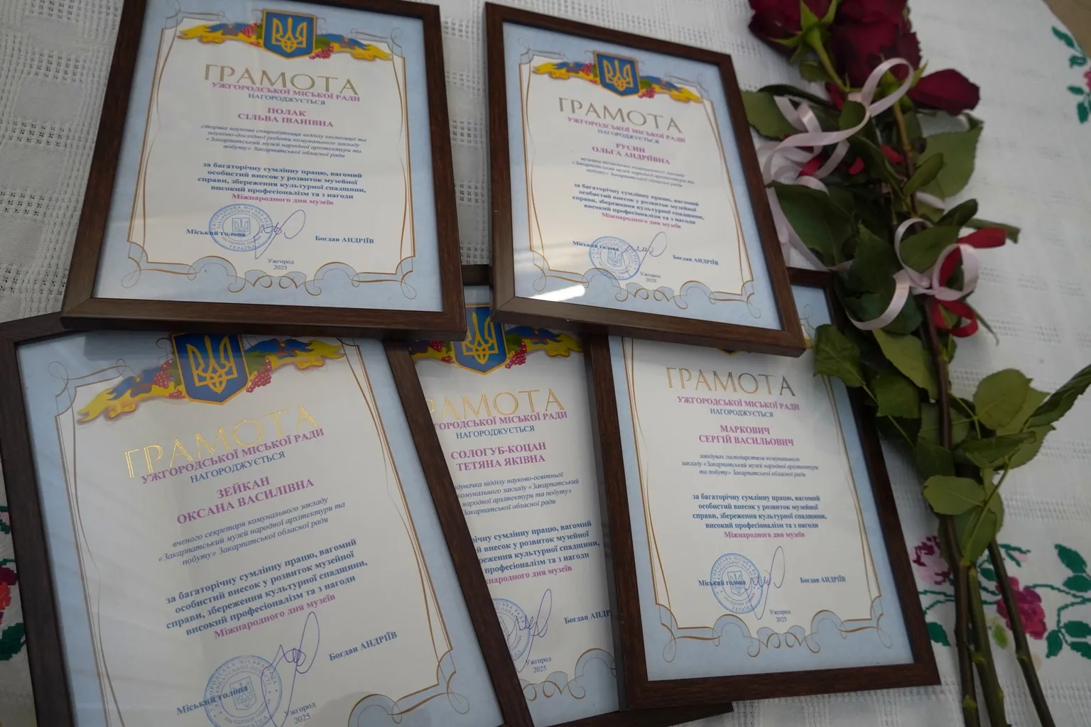 Богдан Євстафійович також вручив почесні грамоти Ужгородської міської ради кращим працівникам музею за вагомий внесок у розвиток музейної справи, багаторічну відданість професії й активну просвітницьку діяльність.