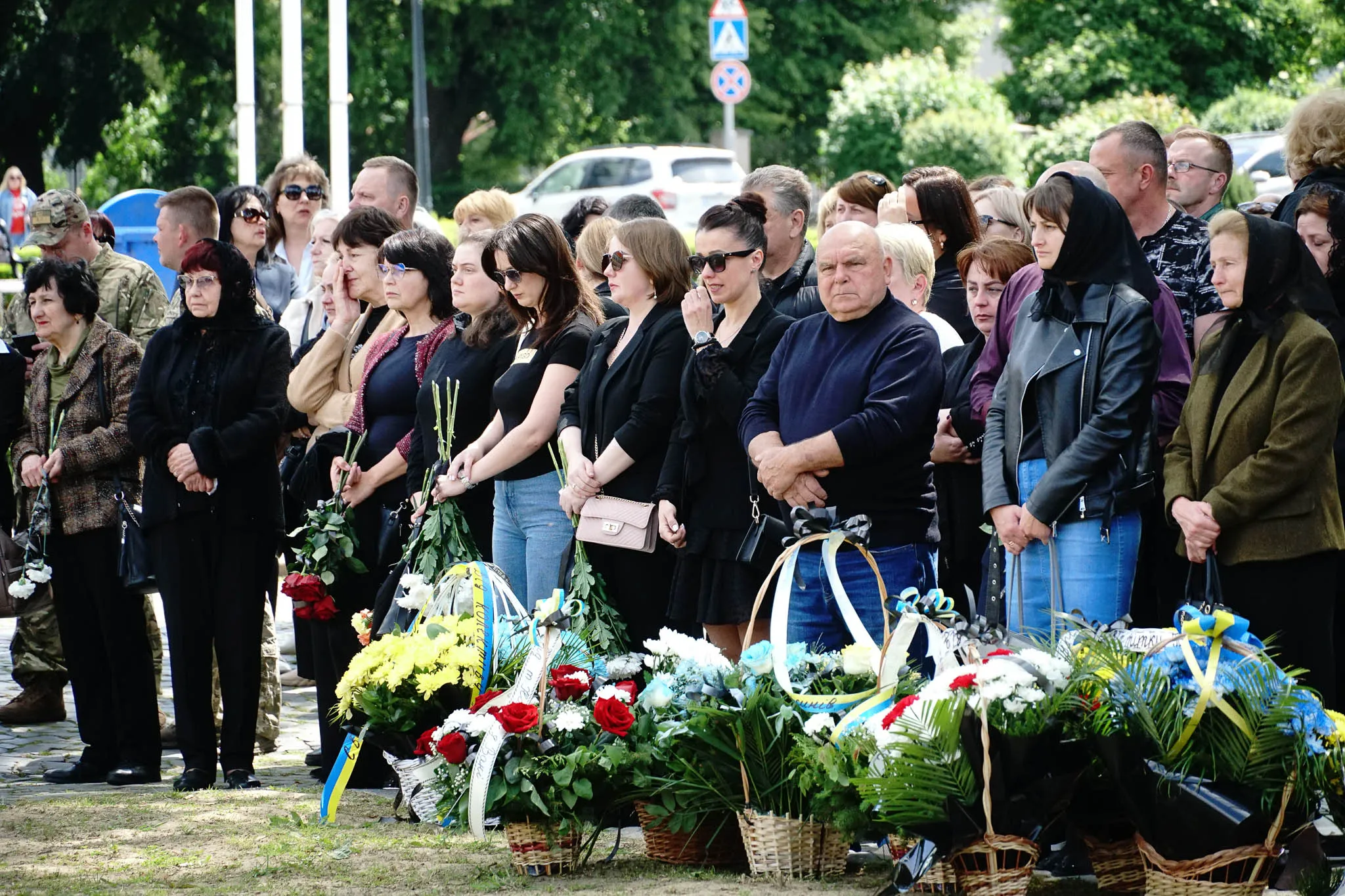 Прощалися із захисником на площі Народній. Віддати шану військовому прийшли рідні та близькі, колеги, міський голова Богдан Андріїв, військові, містяни.