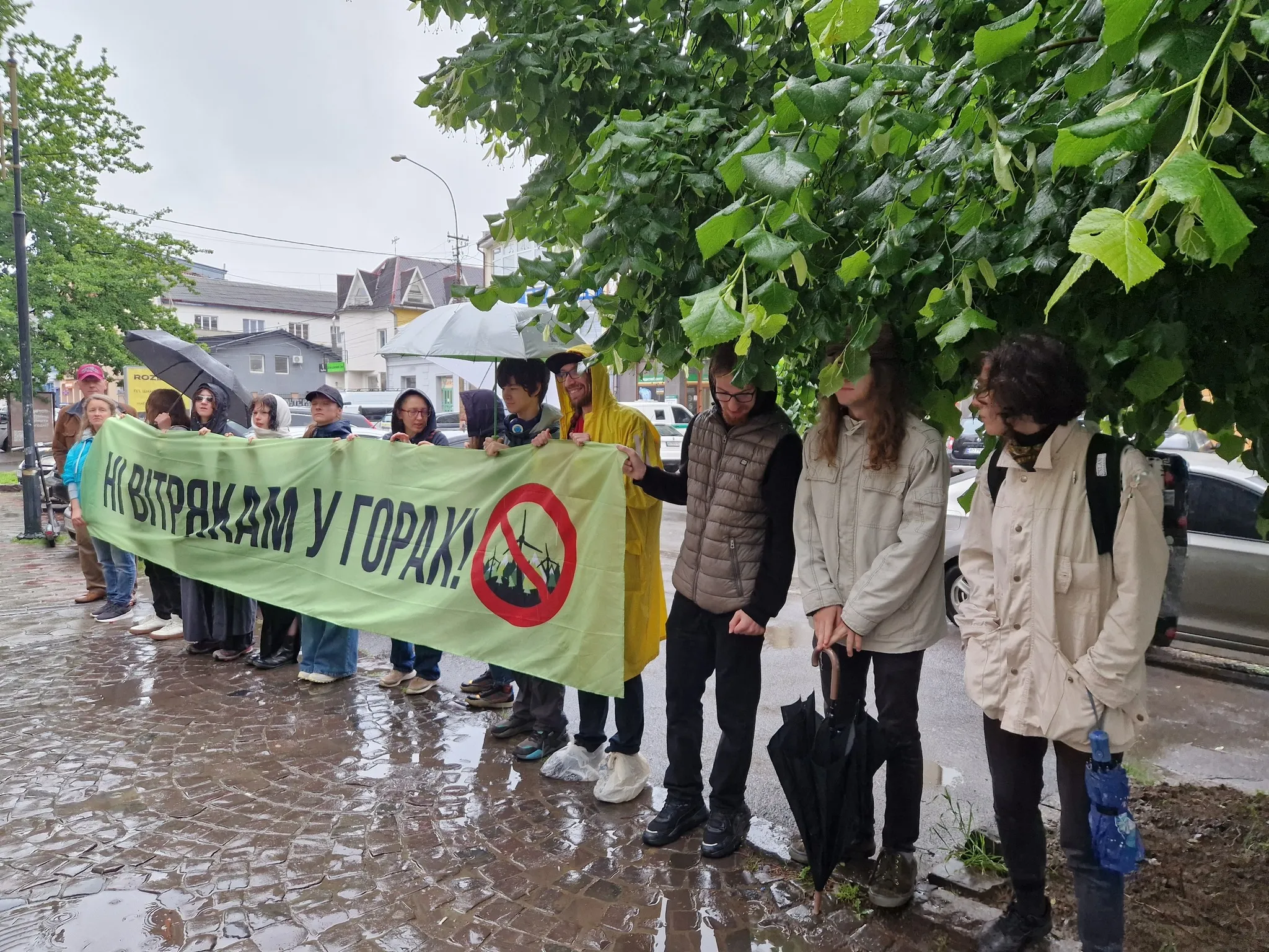 Сьогодні, 23 травня, захисники природи, екоактивісти, представники громадськості прийшли до офісу Державної екологічної інспекції у Закарпатській області з плакатом про захист гірських хребтів Закарпаття від забудови вітряками та з вимогою провести перевірку на полонині Руна, де без висновку з оцінки впливу на довкілля тривають земельні та будівельні роботи зі спорудження ВЕС.