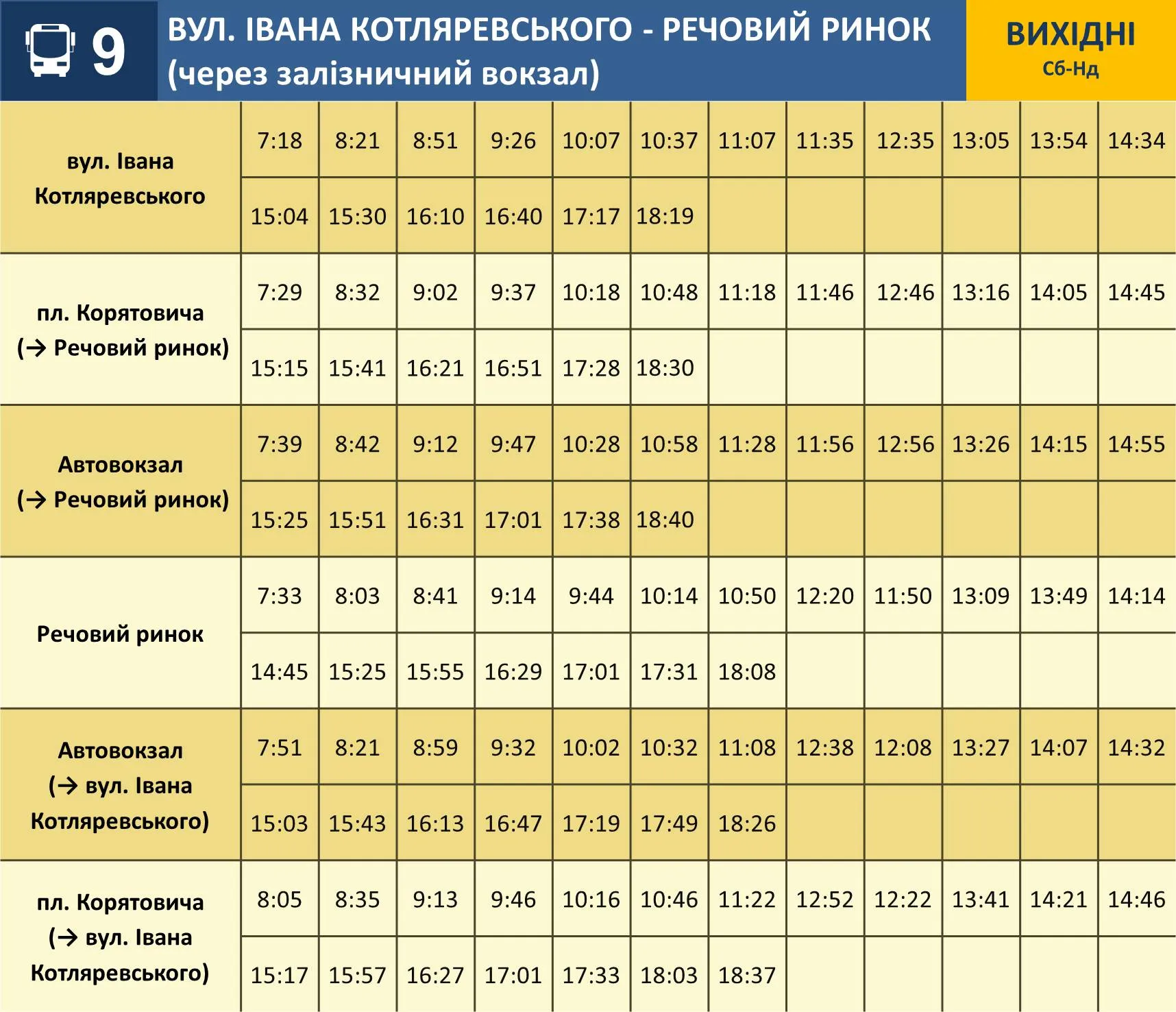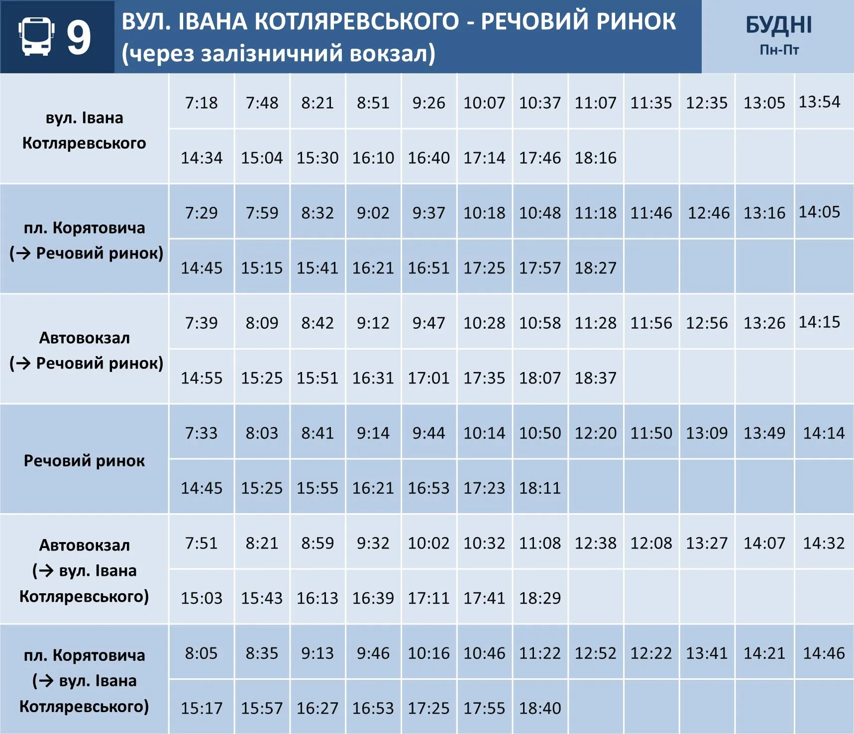 Із суботи, 31 травня, у звʼязку із зверненнями пасажирів вводяться нові графіки руху на маршруті №9.