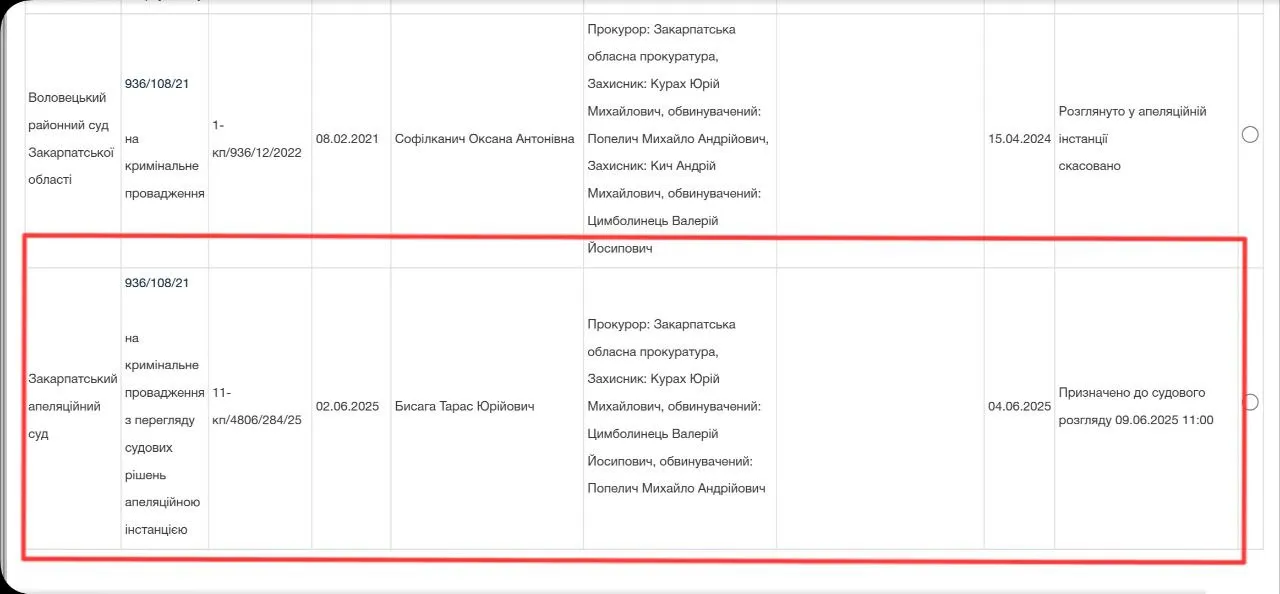У понеділок, 9 червня, об 11:00, суддя Закарпатського апеляційного суду Тарас Бисага розгляне апеляційну скаргу впійманого на хабарі голови-“слуги” Воловецької ТГ Михайла Попелича на рішення суду першої інстанції про його відсторонення.