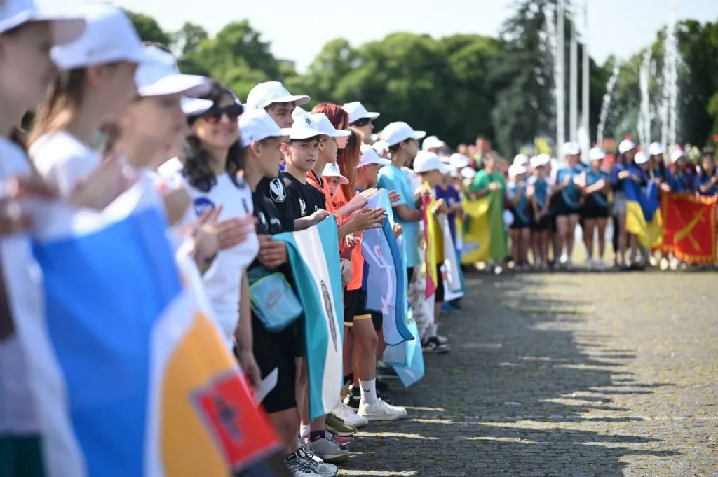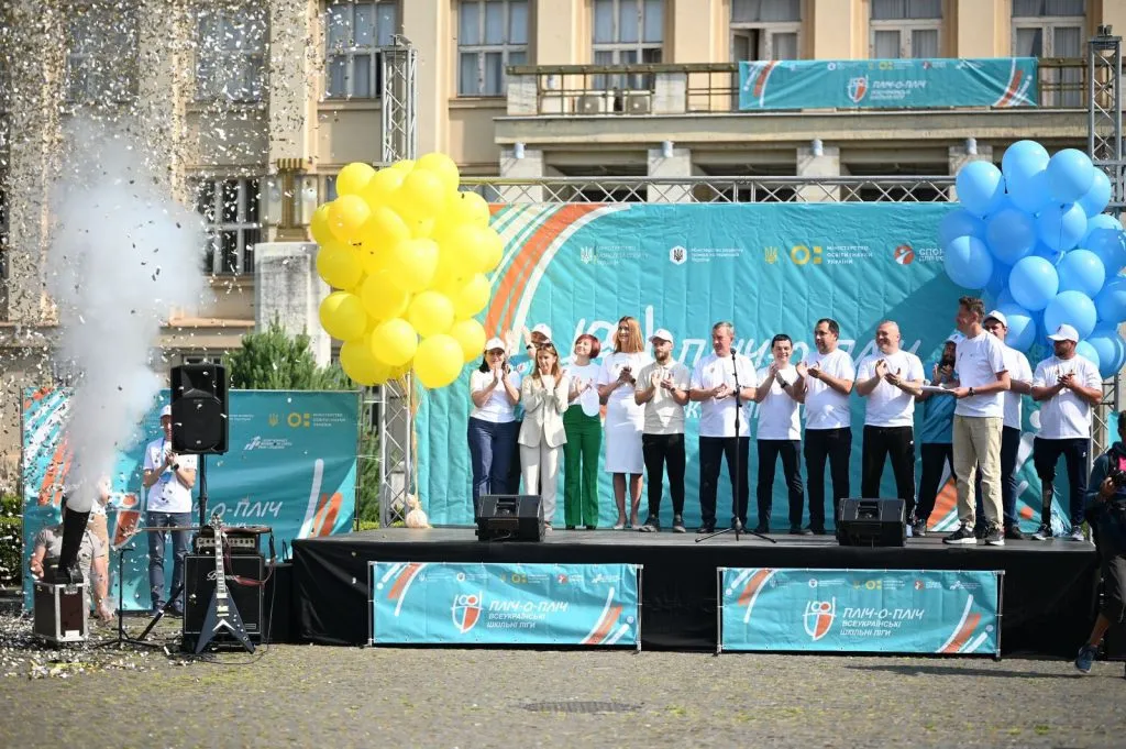 На площі Народній в Ужгороді урочисто відкрили фінал Всеукраїнського спортивного проєкту «Пліч-о-пліч Шкільні ліги», що об’єднав понад 500 учасників із 22 областей України та Києва — загалом 45 команд.
